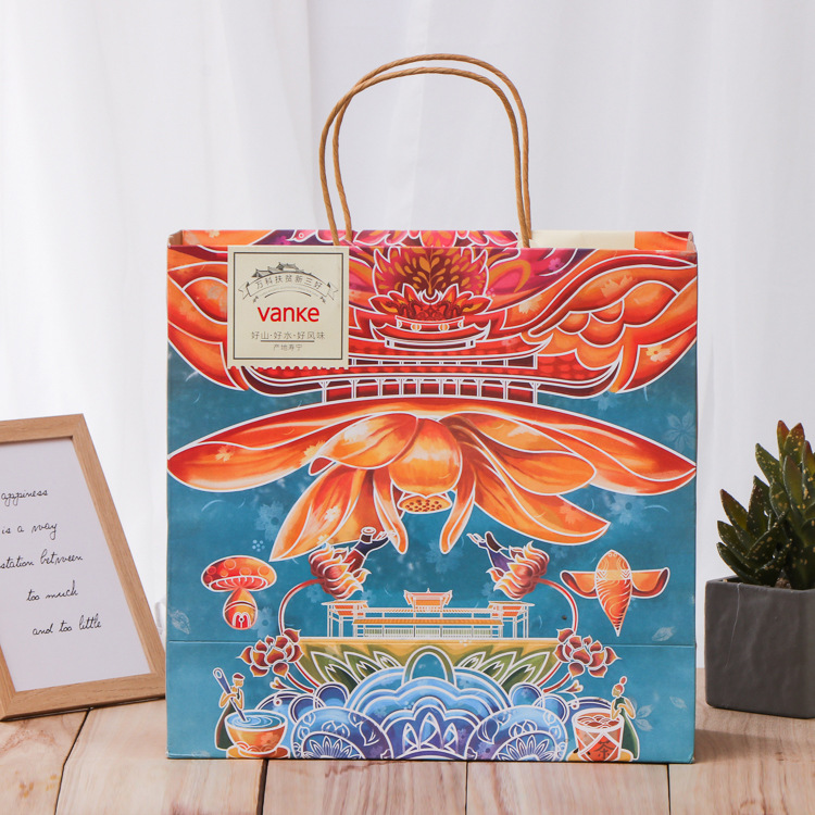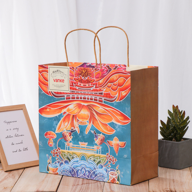 加厚牛皮纸手提袋定制彩印商场服装包装袋白卡纸方底袋定做印logo