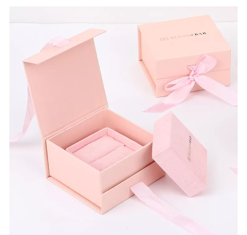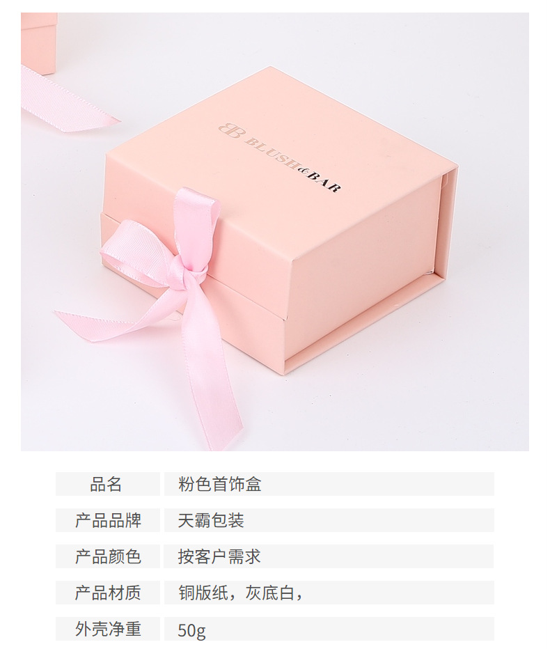 厂家定制精美高档简约时尚粉色蝴蝶结首饰纸盒礼品包装盒