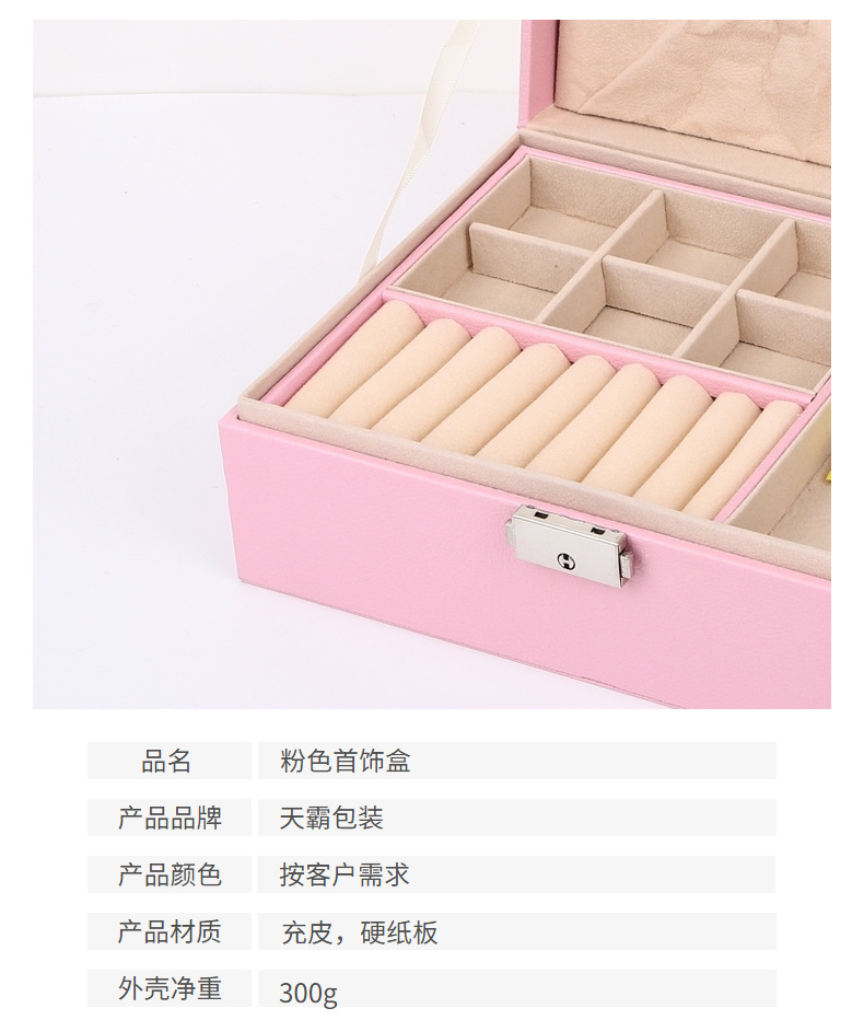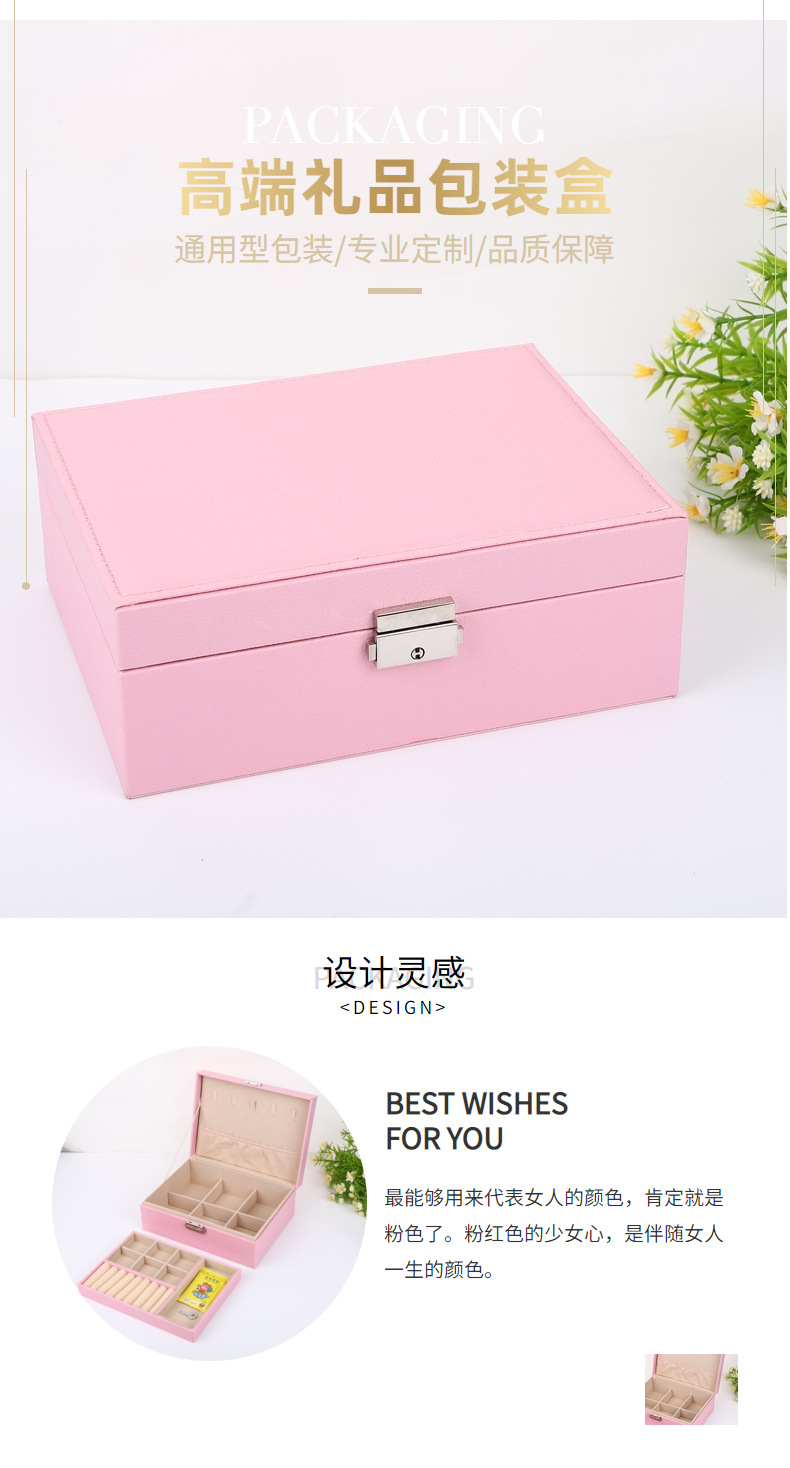 厂家定制高档珠宝首饰盒皮质翻盖项链耳环手镯收纳包装盒