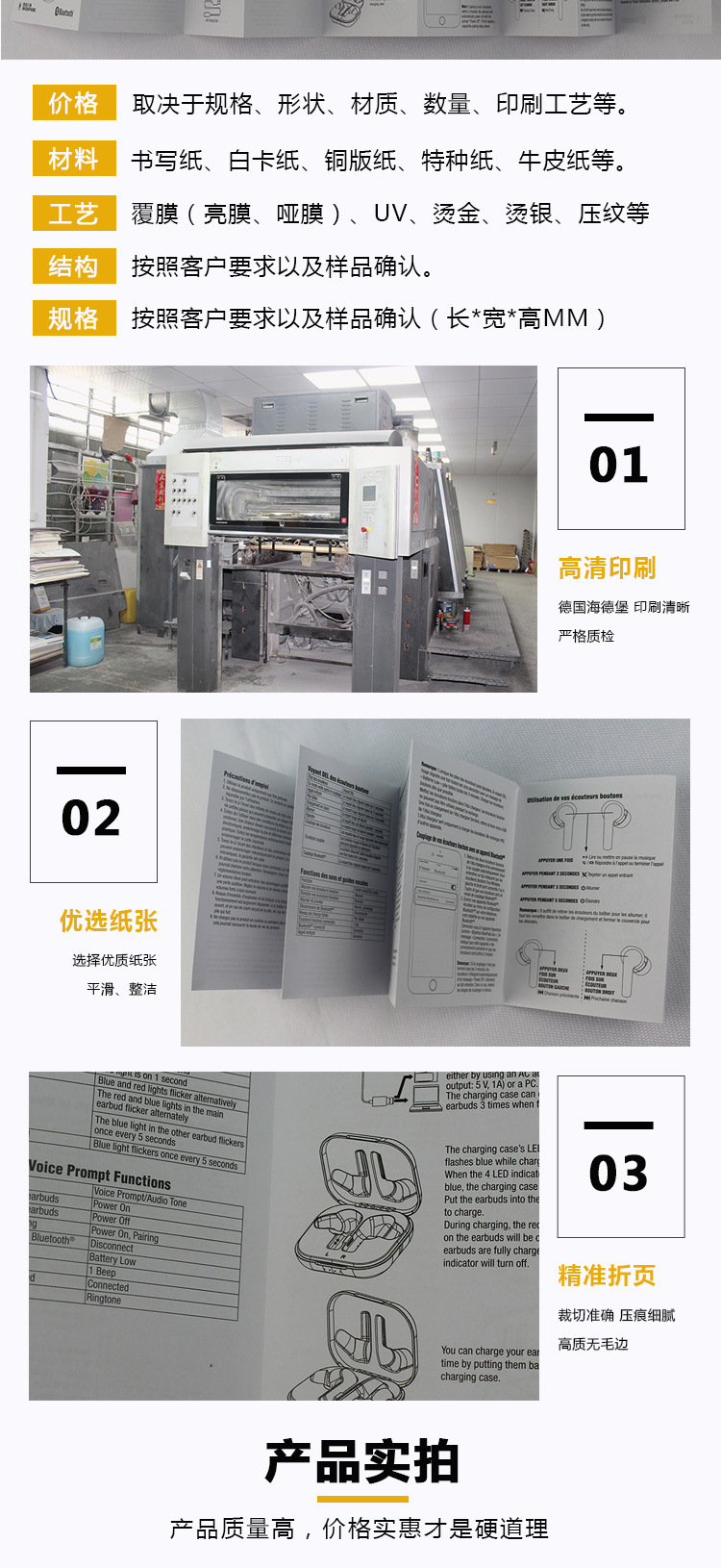 说明书定制黑白折页蓝牙耳机说明书打印电子产品说明书印刷