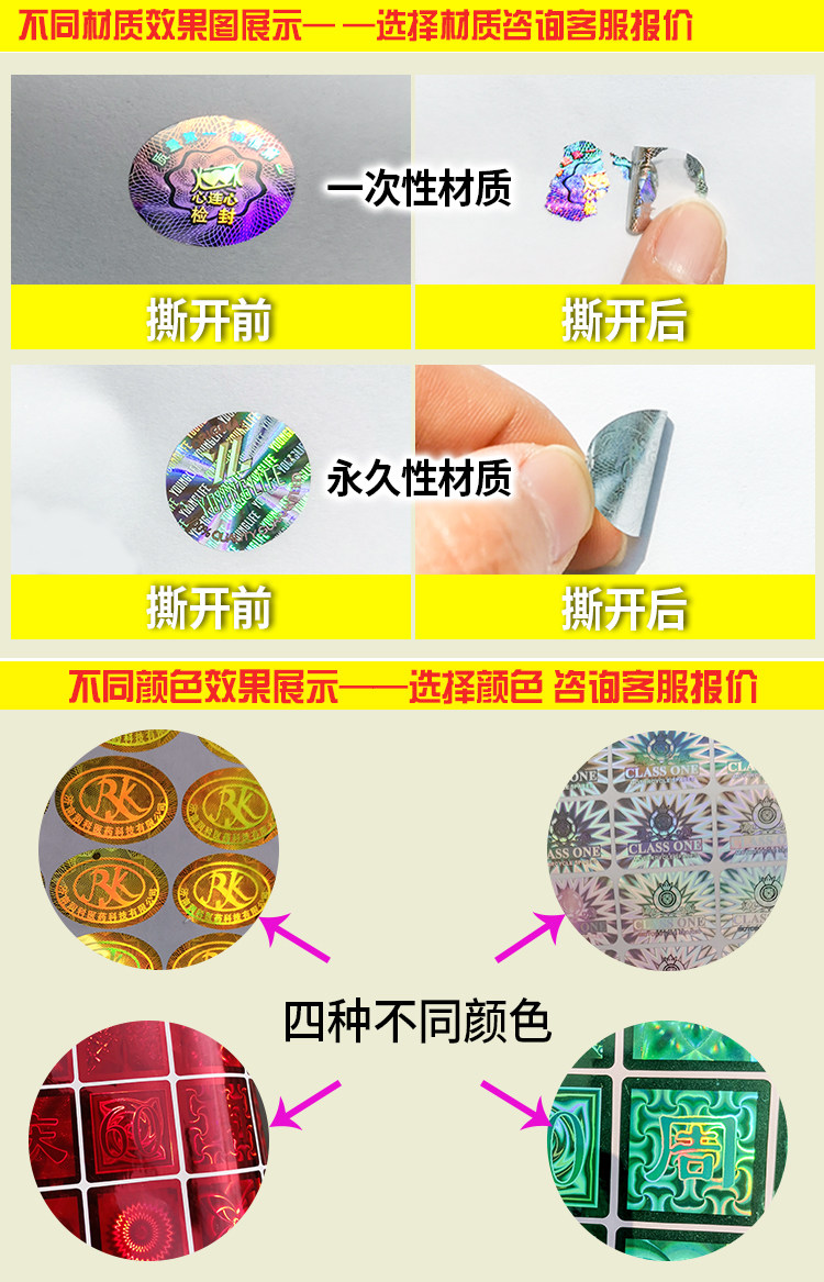 二维码激光标签定制 印刷不干胶通用防伪商标激光镭射防伪标