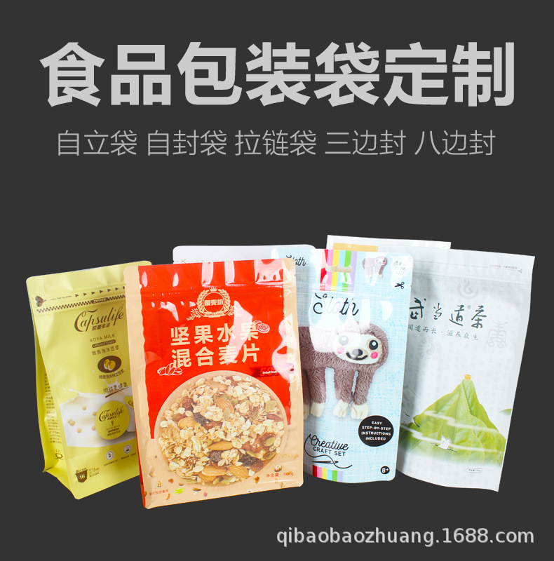 自封自立袋定做食品包装袋定制大米饼干塑料拉链真空袋可印刷logo