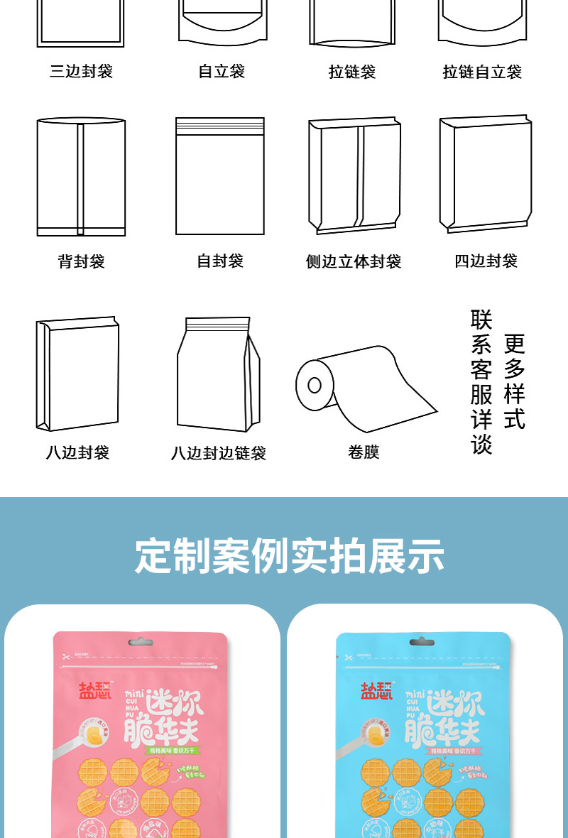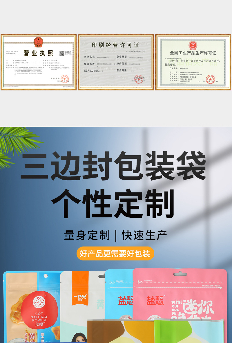 工厂印刷塑料真空食品包装袋铝箔袋三边封袋背封袋自立自封袋