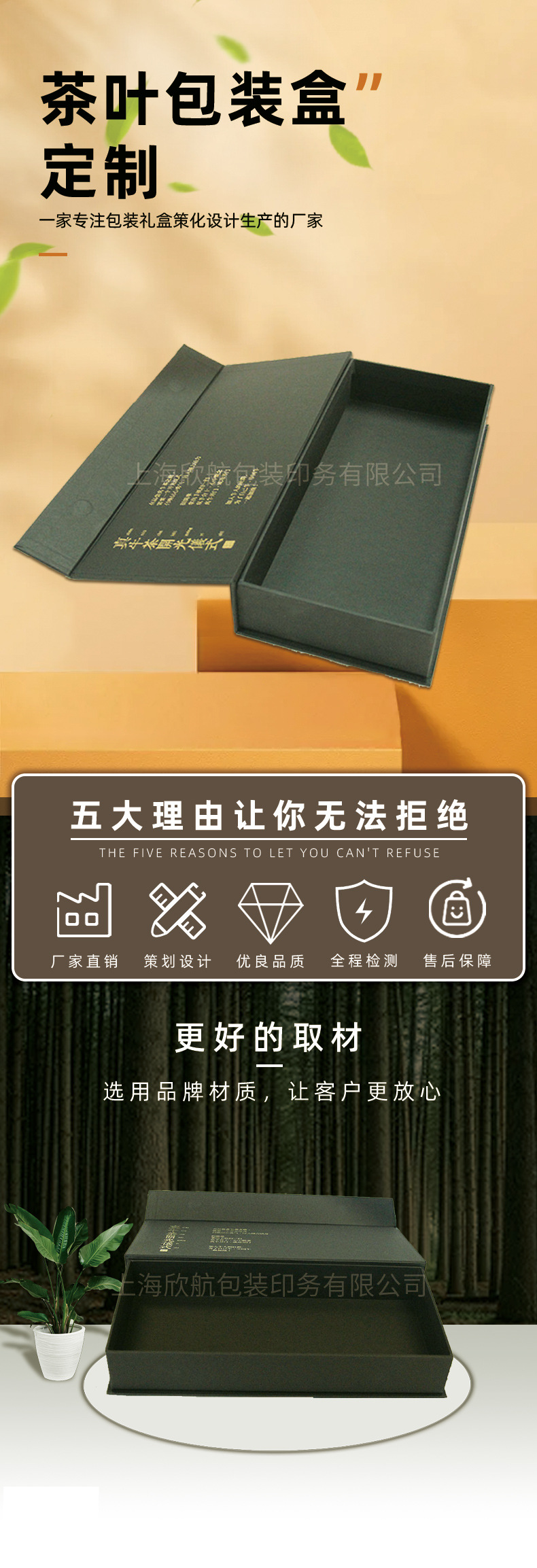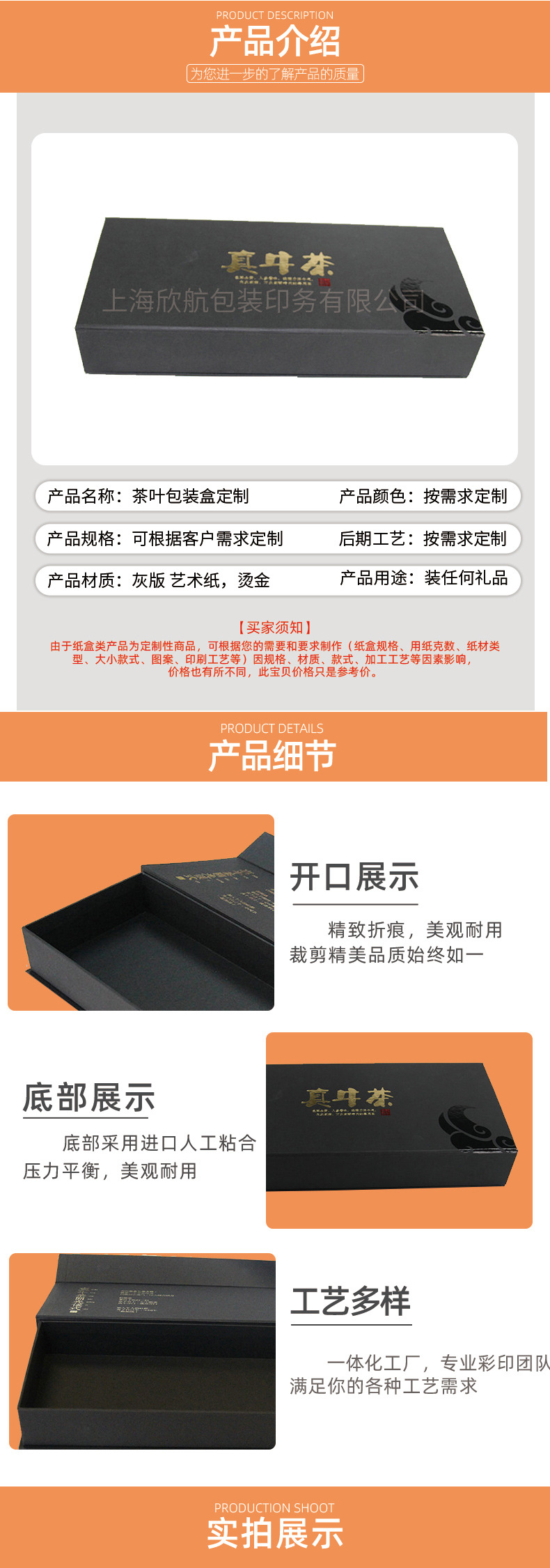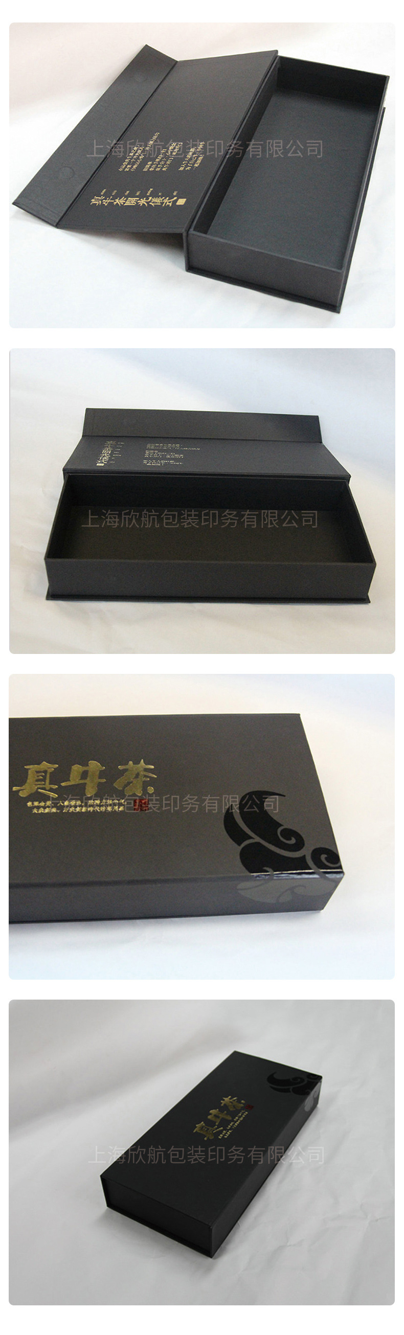 工厂定制烫金书型盒黑色翻盖礼盒 创意设计定制茶叶包装盒