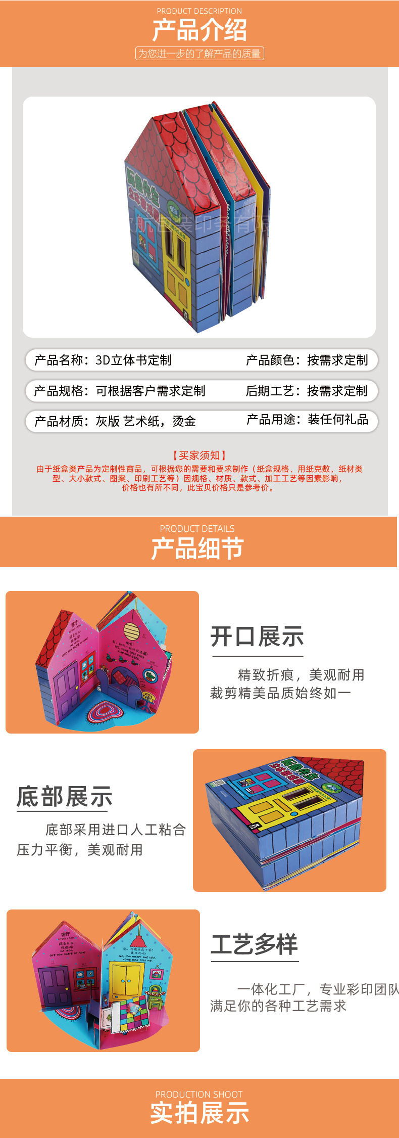 儿童3D立体书印刷 儿童立体绘本硬纸板启蒙翻翻书设计印刷定做