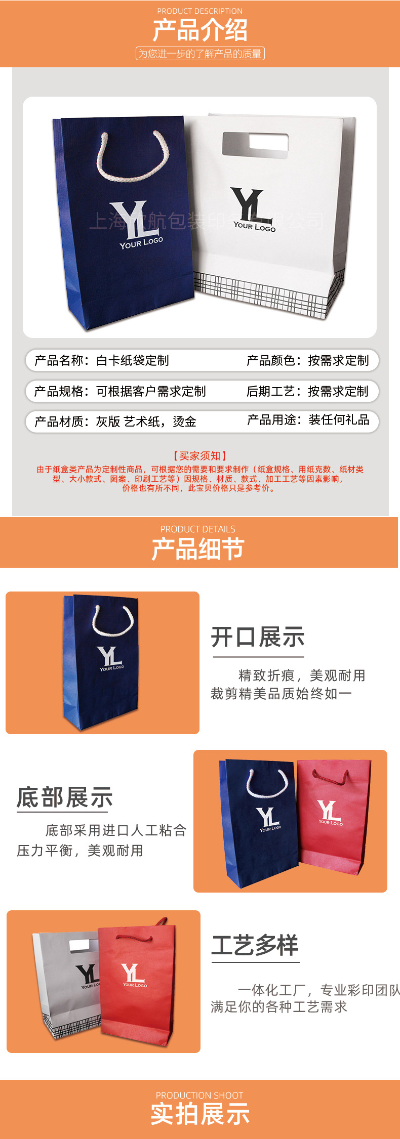 白卡纸手提袋礼品袋定制 珠宝首饰饰品包装袋定制印刷logo