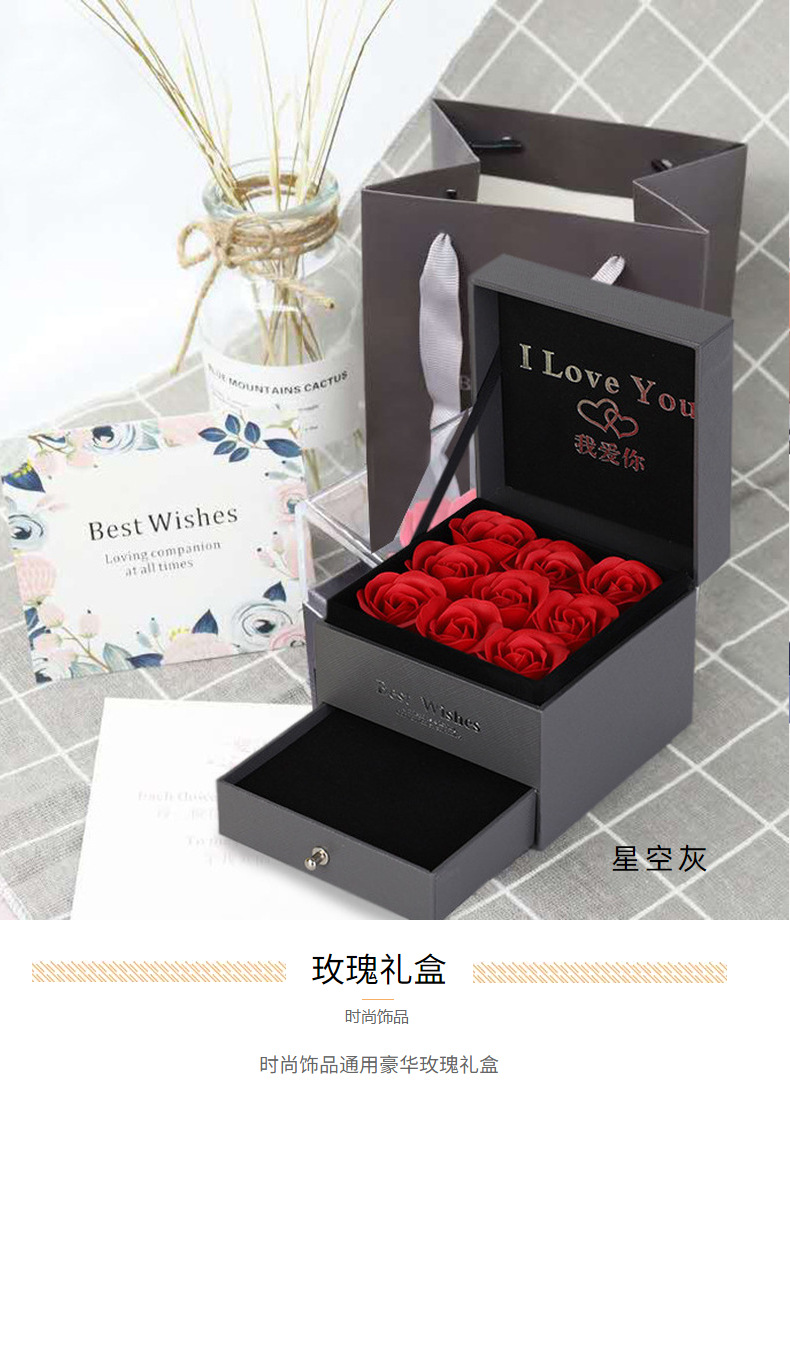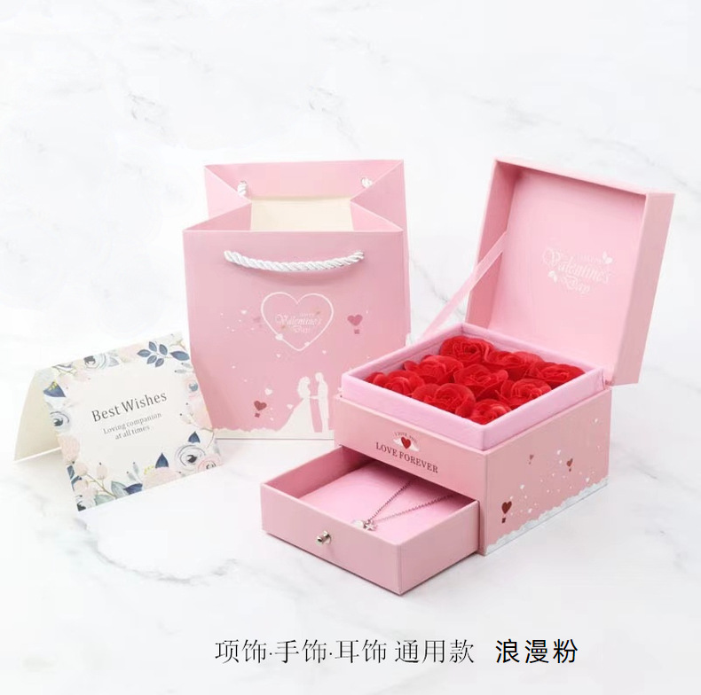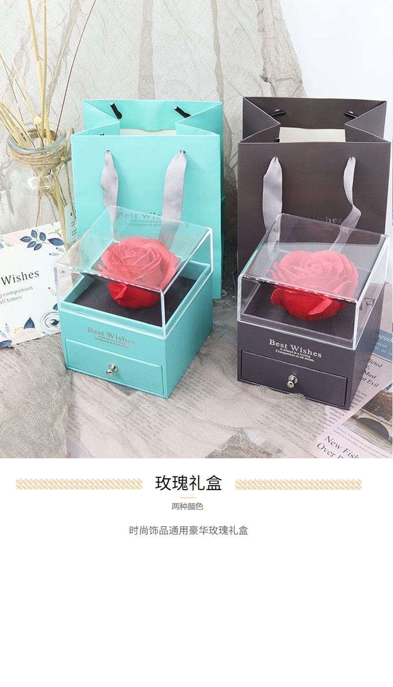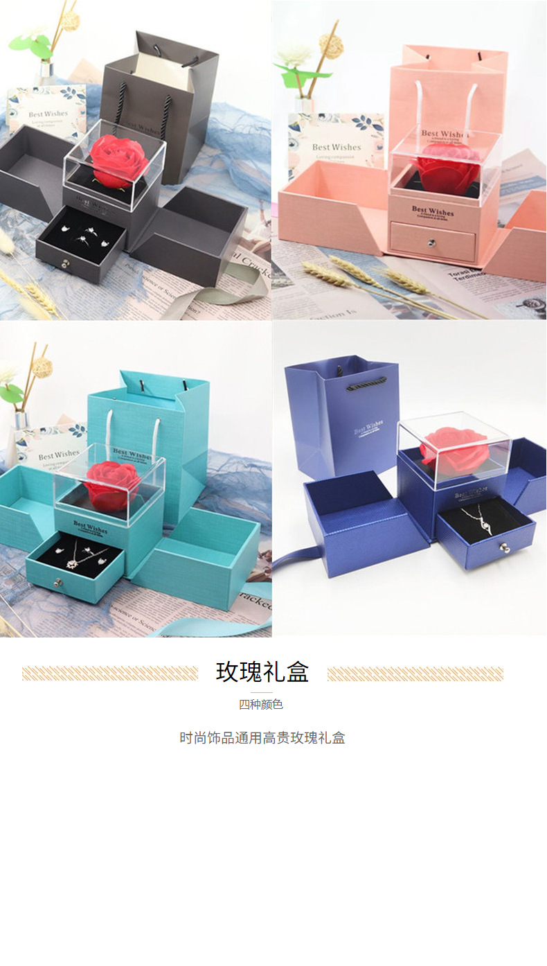 项链盒玫瑰花永生花盒情人节礼物礼品首饰戒指手链盒手饰盒收纳袋