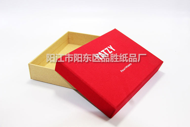 面盖为布料丝印,底盒为牛皮纸包料