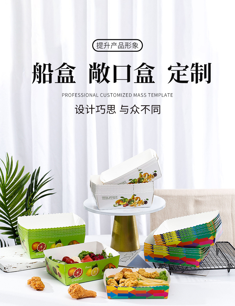 批发船盒蛋挞小吃白卡无盖纸盒薯条炸鸡一次性敞口纸盒可加印logo