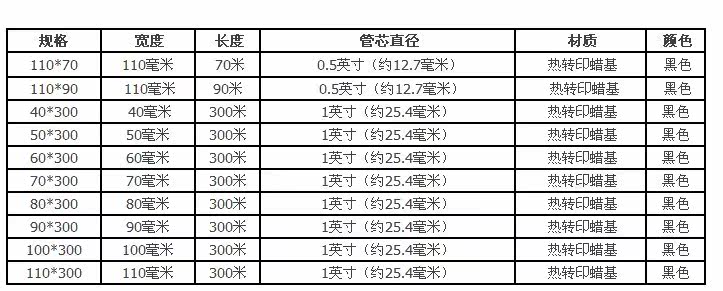碳带常用宽度(mm):40、50、60、70、80、90、100、110