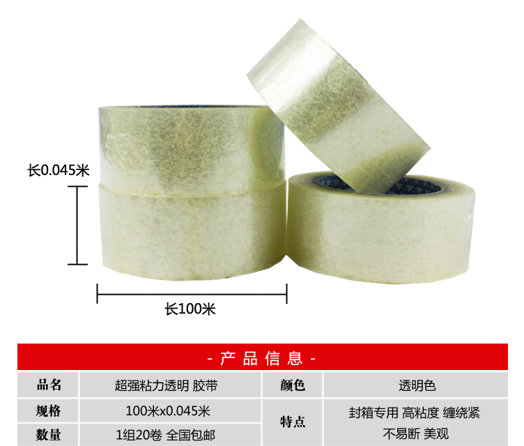 淘宝胶带封箱带胶带透明胶带封箱胶带胶布4.5cm交代胶布20卷