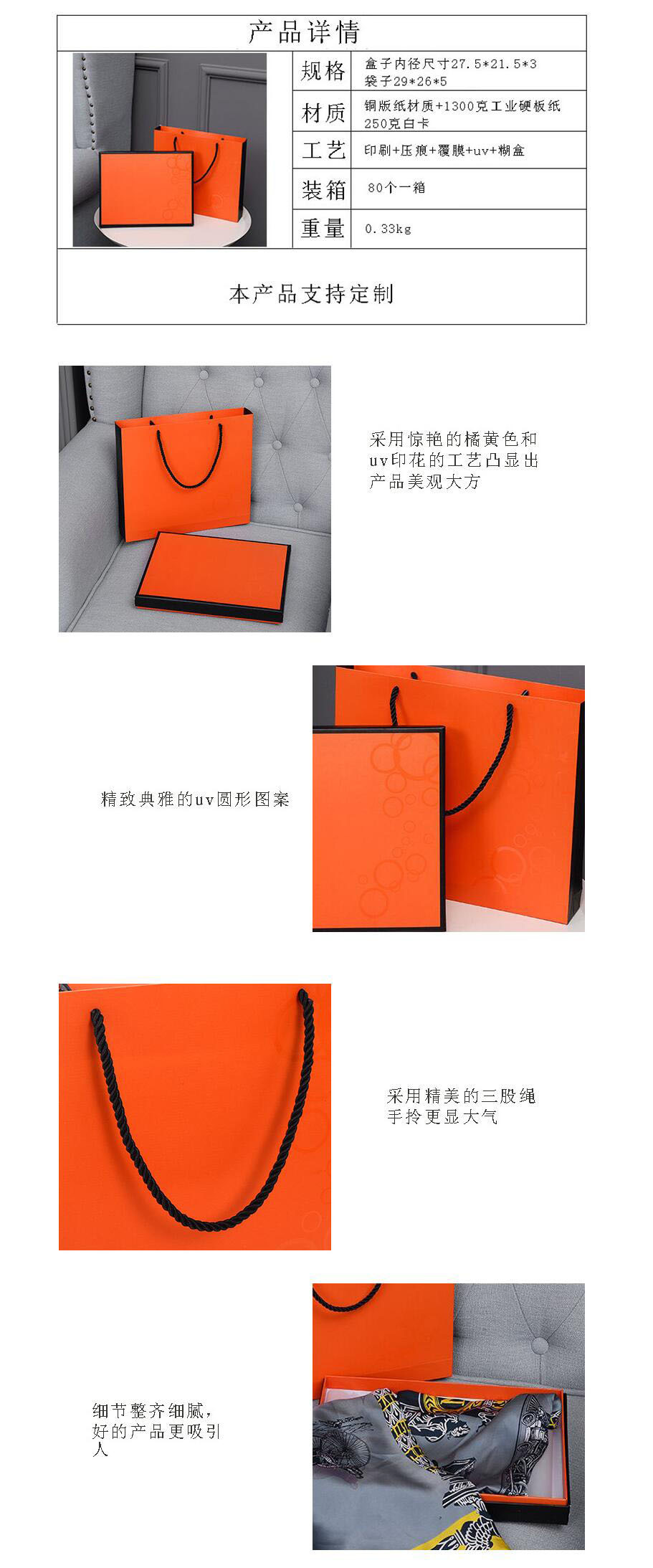 创意天地盖礼盒定制长方形橙色包装盒手提衬衫丝巾纸盒批发