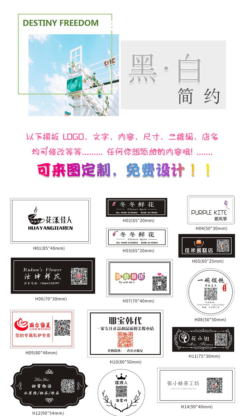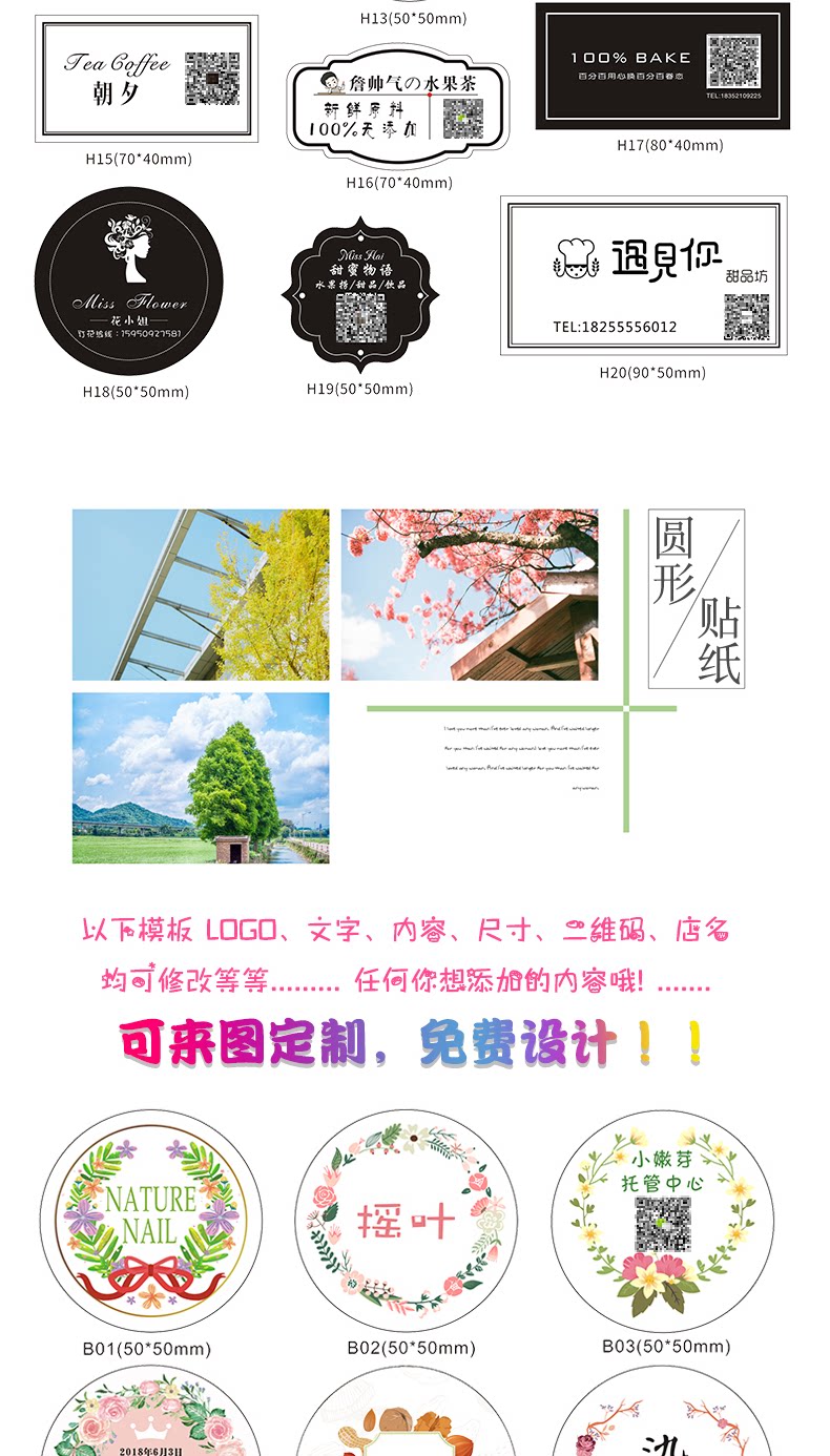 不干胶定制做网红贴纸外卖鲜花店防水果奶茶logo二维码服装商标签