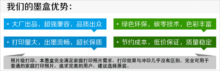 3.循环填充墨盒采用进口优质墨水,墨水绝不堵头,流畅性优异,泡沫少,色彩逼真、饱和、还原性好,不洇色;
