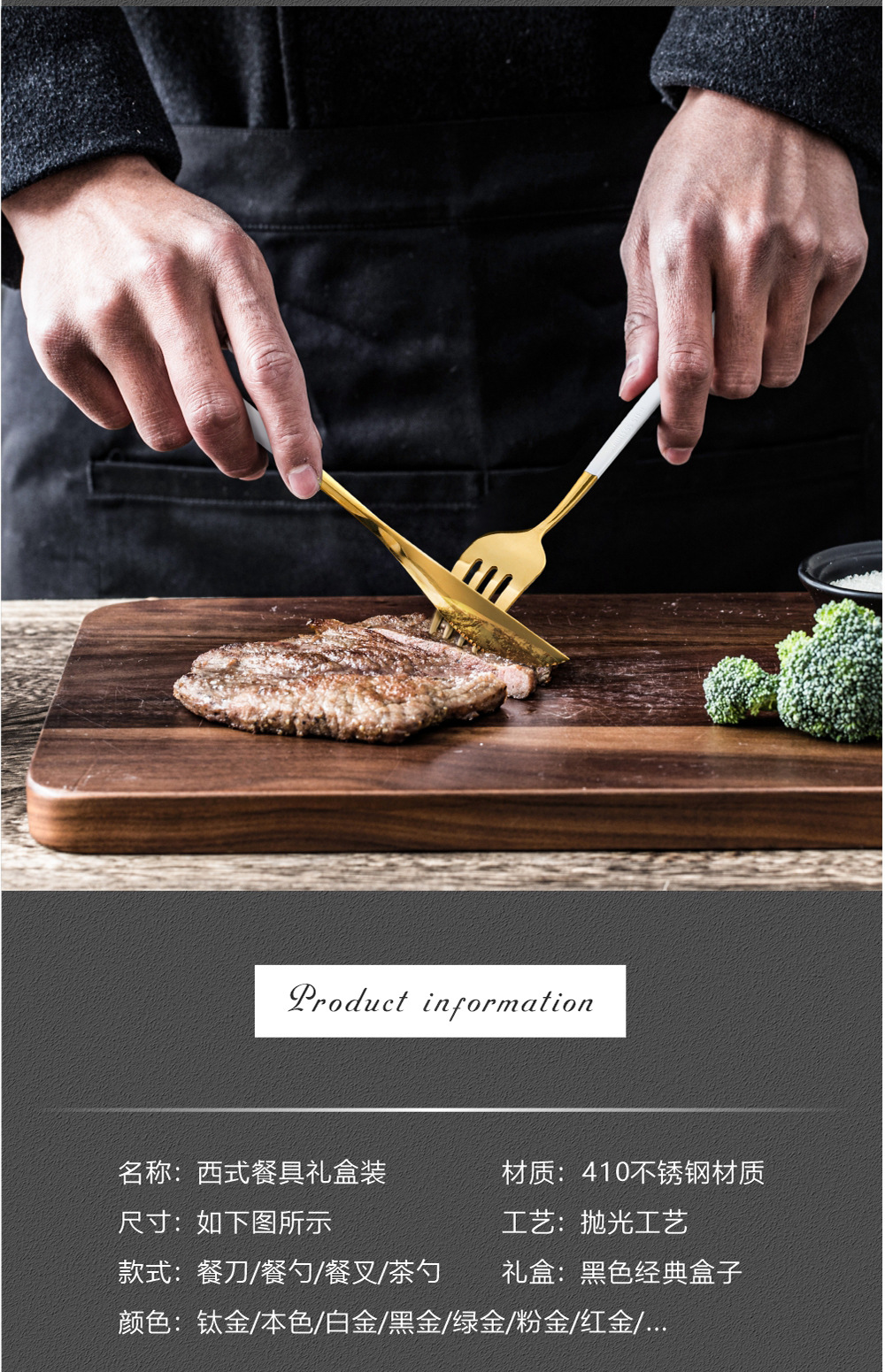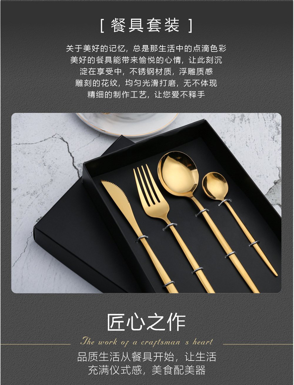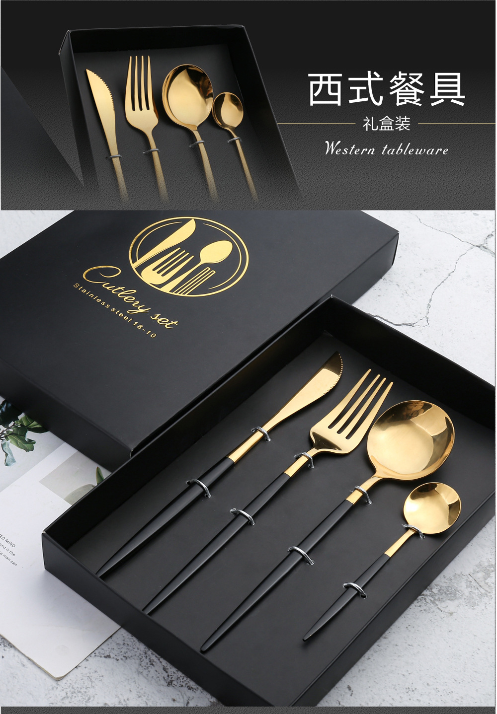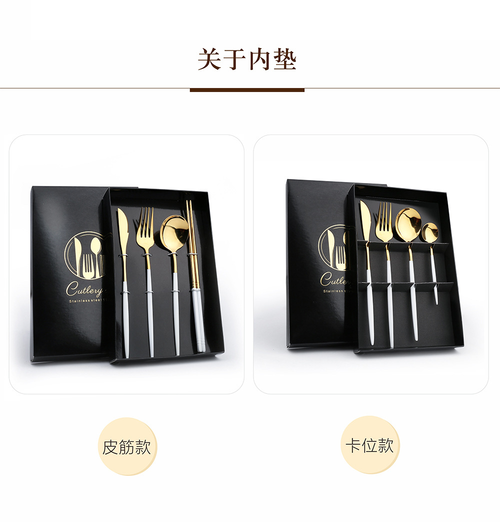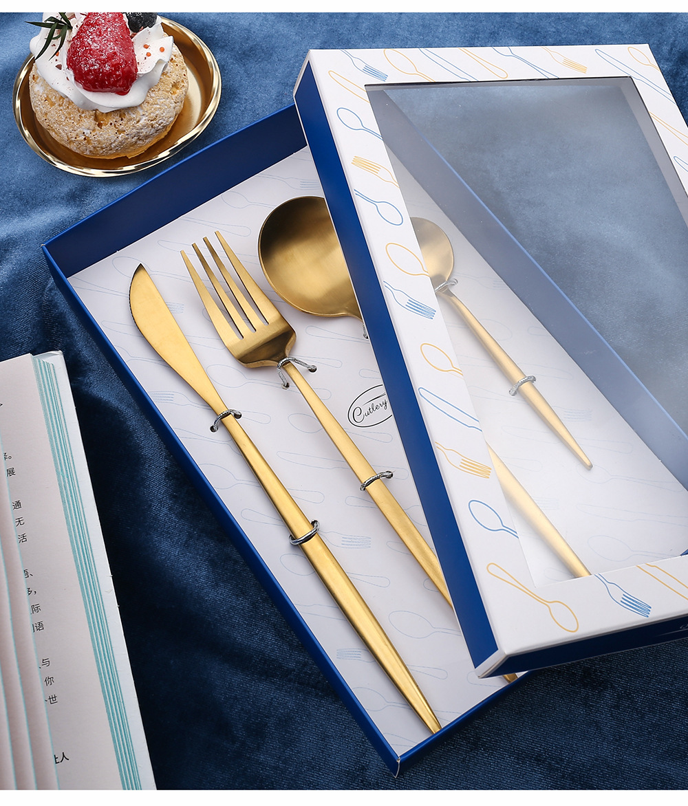 Y不锈钢餐具套装 葡萄牙金色刀叉勺四件套 西餐餐具礼盒勺筷套装