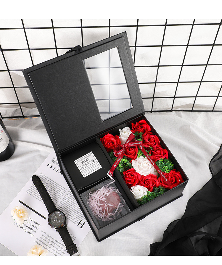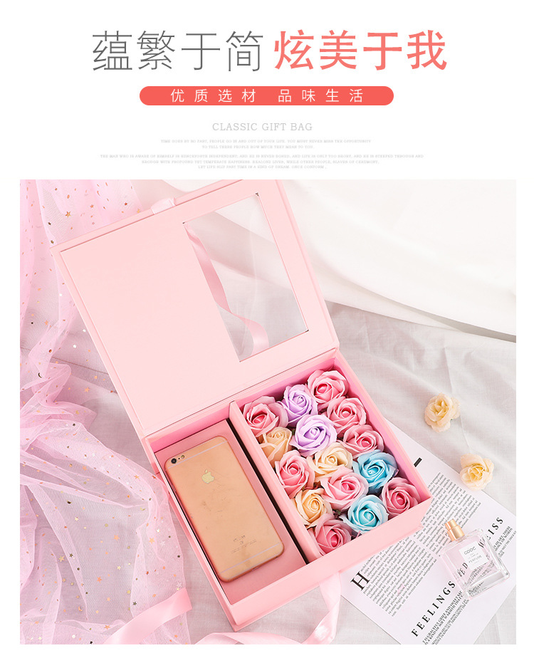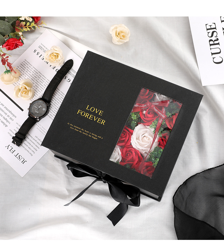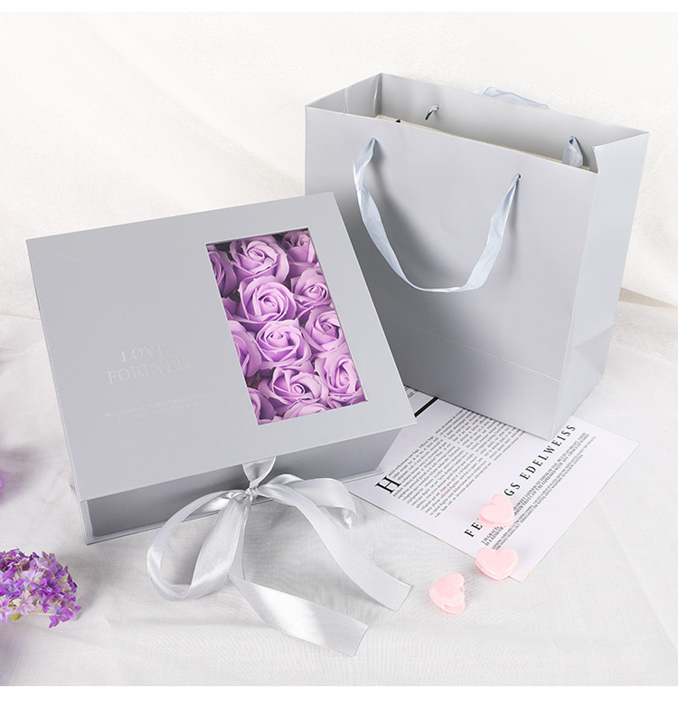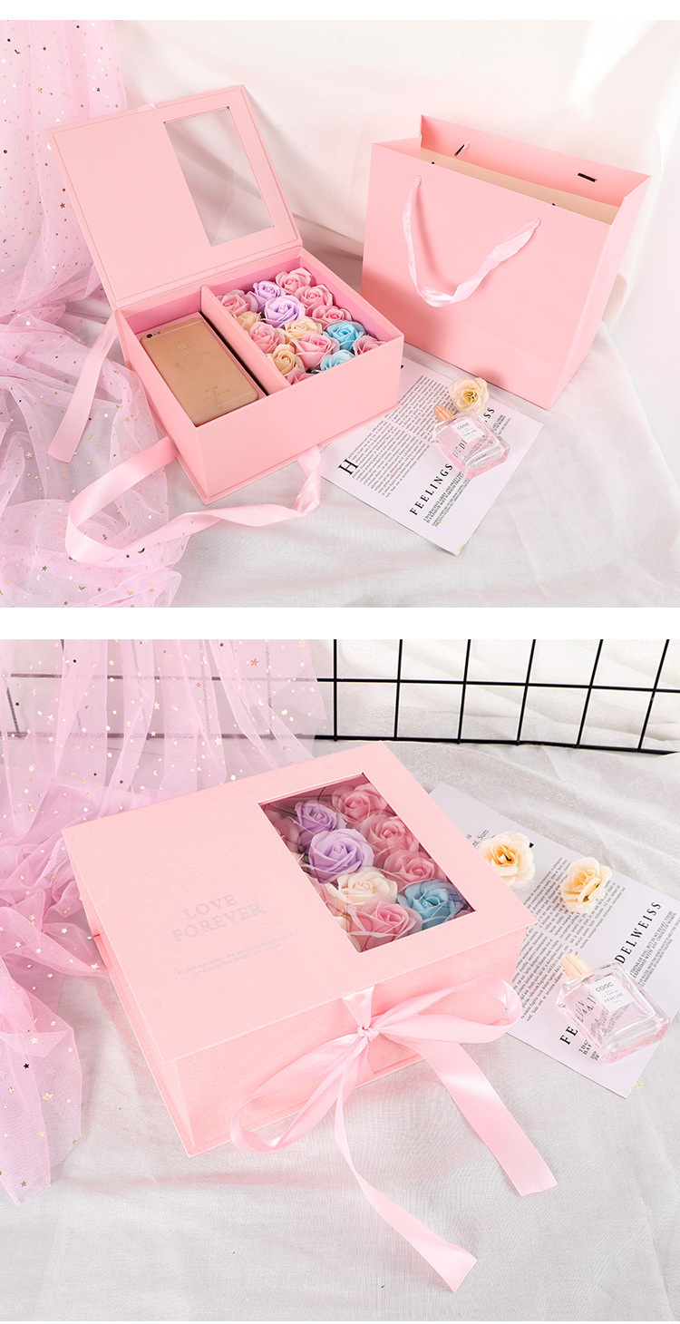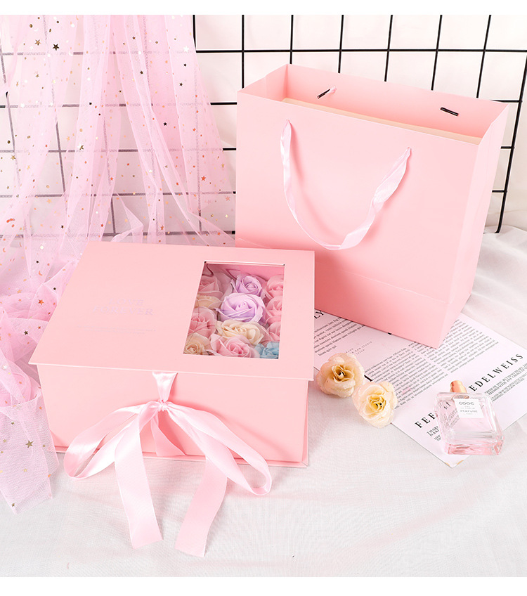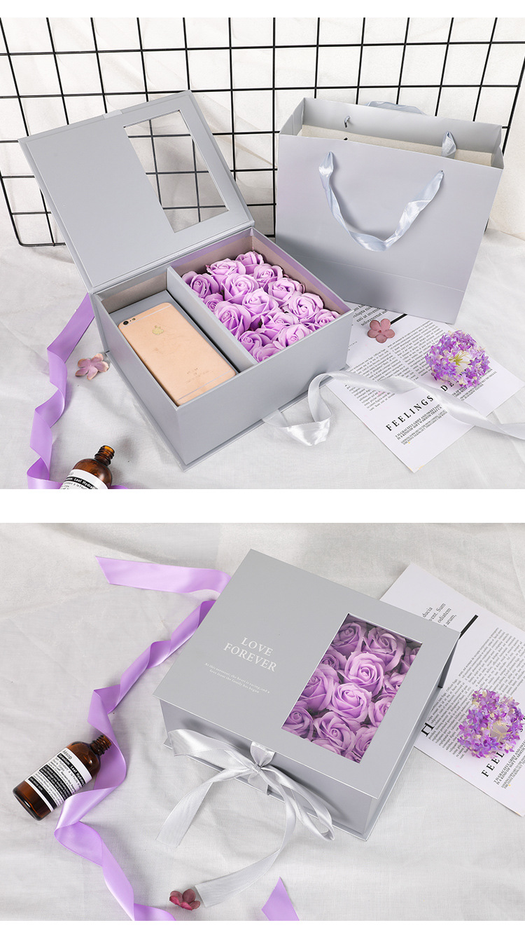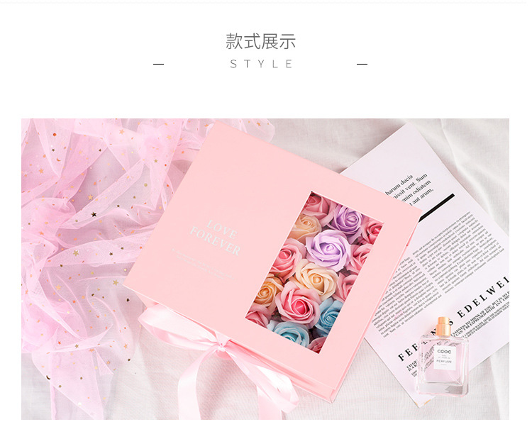 永生花礼盒鲜花包装礼盒永生花生日礼物盒翻盖开窗花盒礼品盒ins