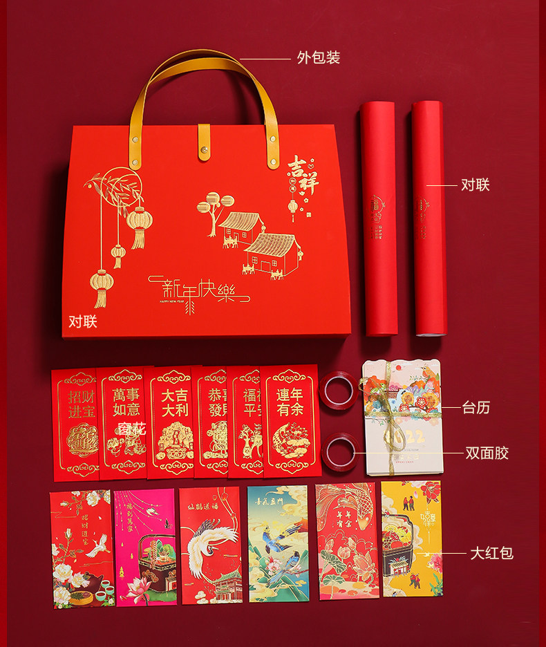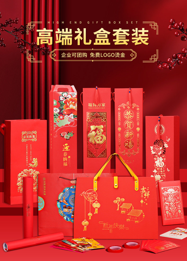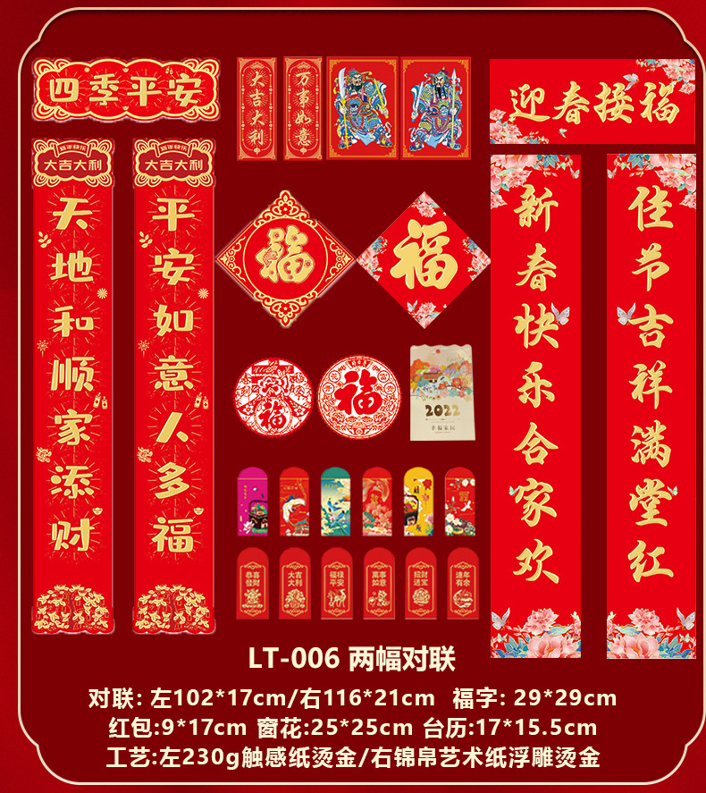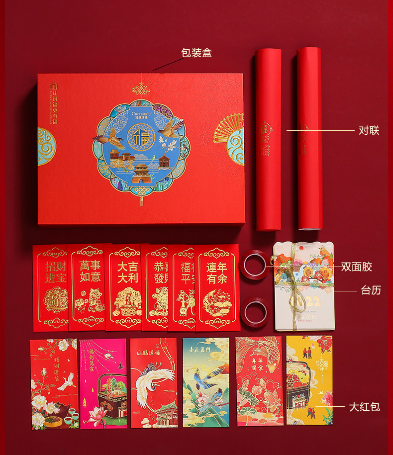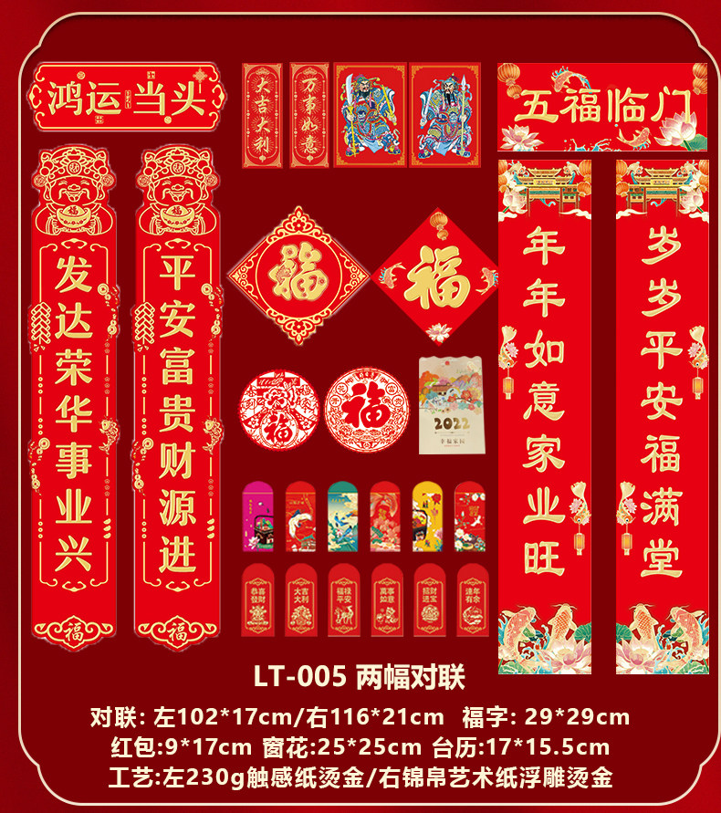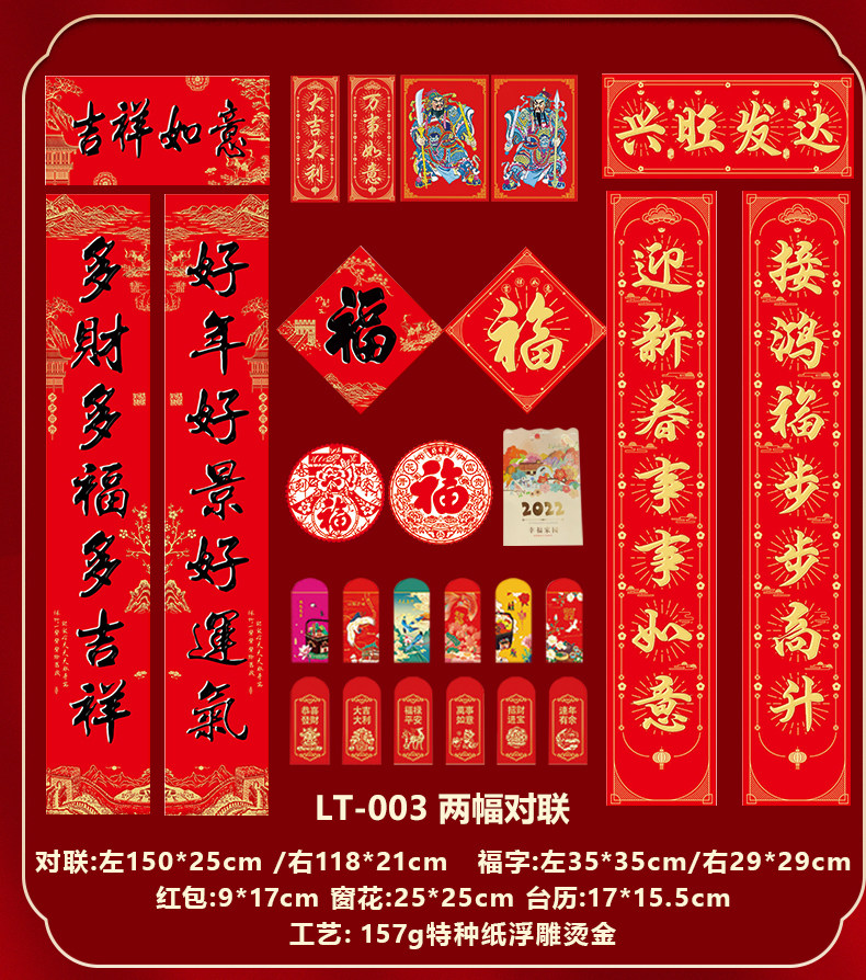 2022虎年新春对联创意国朝风企业春联礼盒装浮雕烫金广告logo印刷