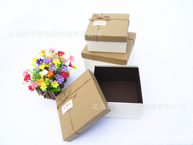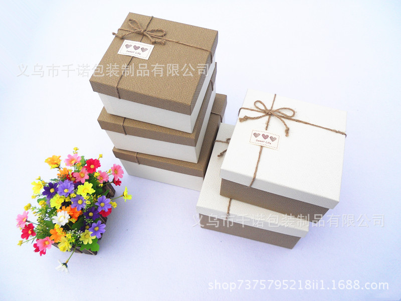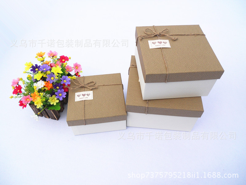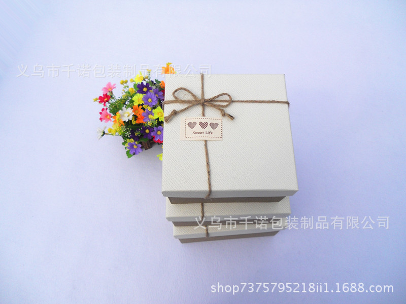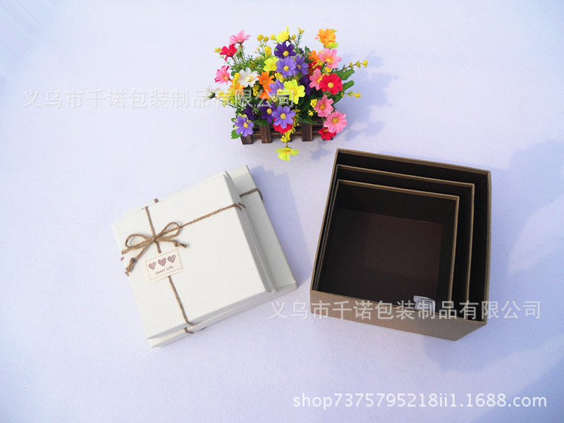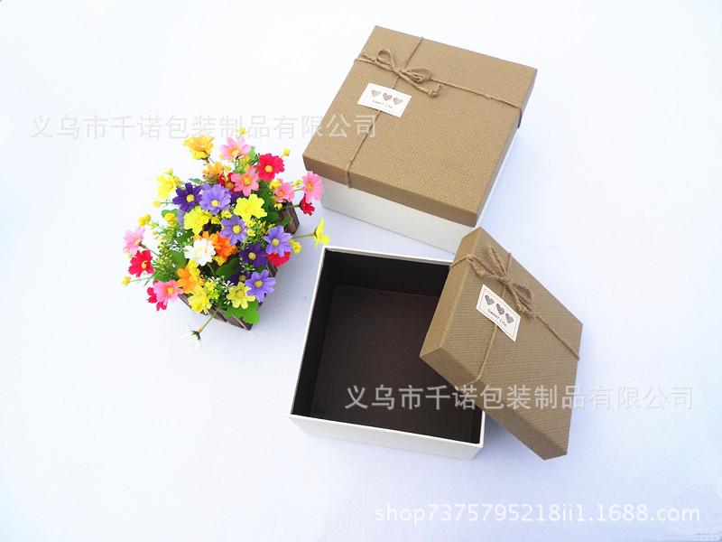 厂家大量供应牛皮纸包装盒白牛皮纸盒手工麻绳捆绑礼品纸盒定做