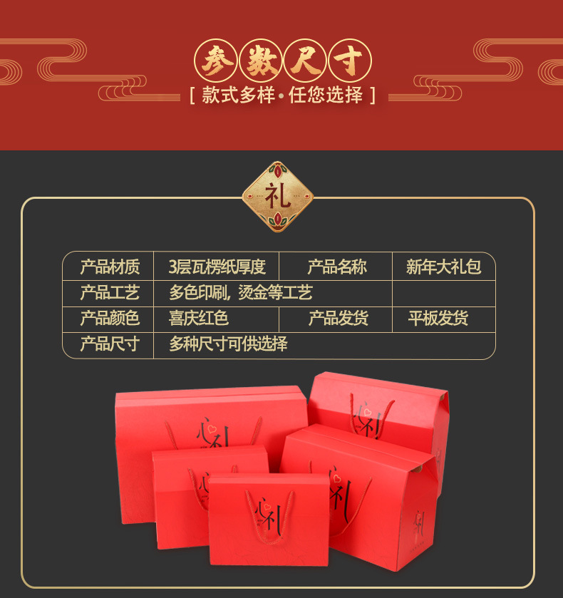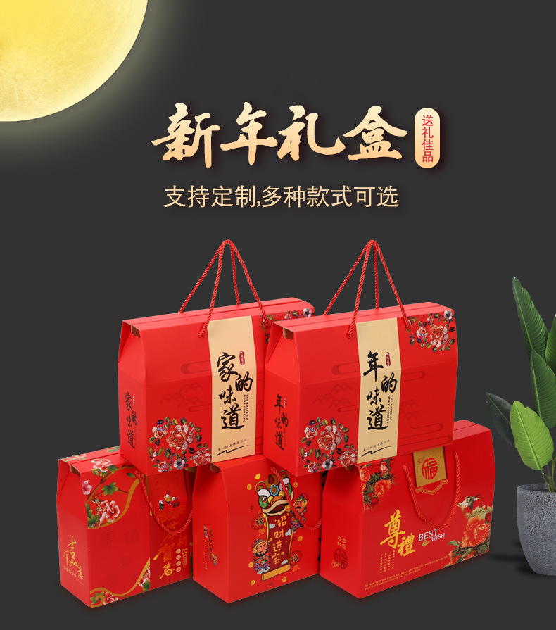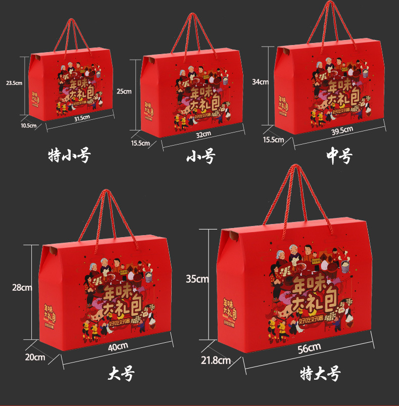 10个定制logo春节过新年货礼盒空盒包装盒熟食坚水果海鲜手提袋