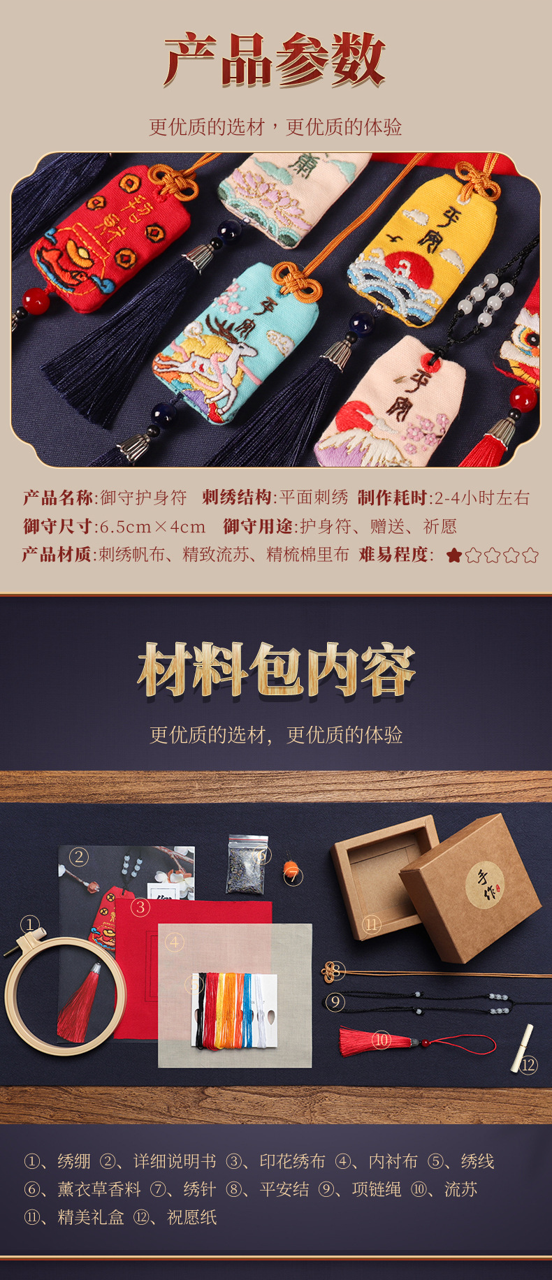平安符diy手工自绣醒狮御守材料包平安福荷包符制作男友