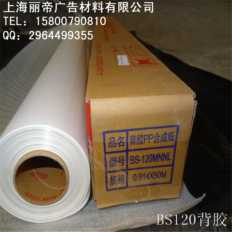 防水背胶PP合成纸,PP合成纸,户内写真背胶 【品名】防水背胶PP合成纸 【特性】打印画面精度高,干燥速度快,色彩丰富自然 【适用范围】广泛运用于海报、易拉宝、X展架、挂画广告。配合颜料墨水和裱膜能短期用于户外。 【规格】0.914*50,1.07*50,1.27*50,1.52*50