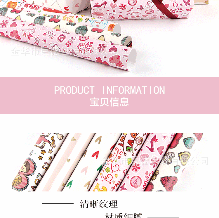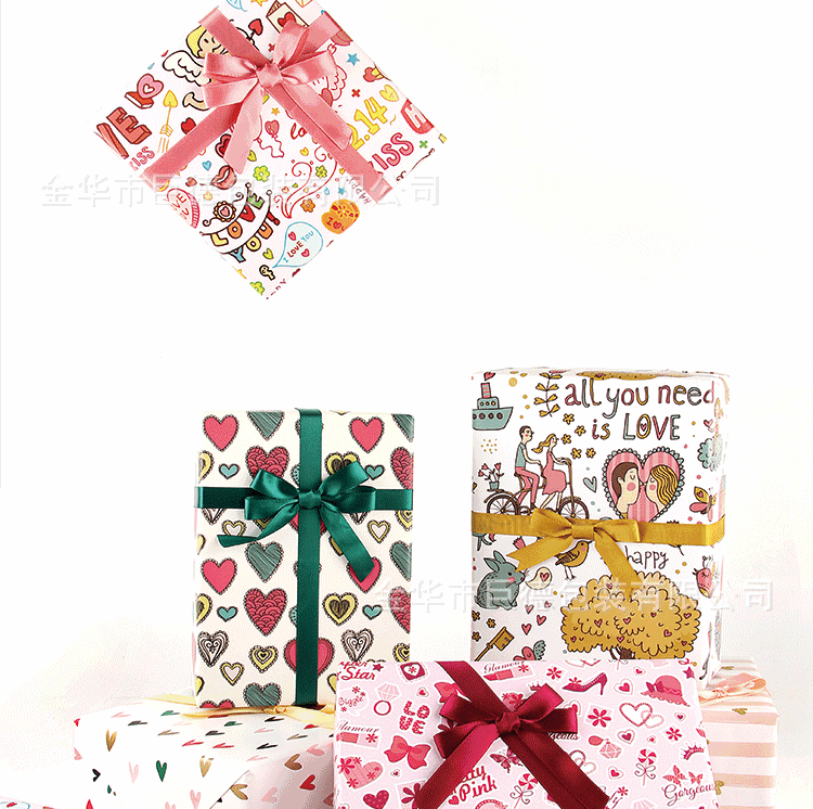 定制礼品包装纸情人节生日礼物包装纸铜版纸卡通包装纸包书纸批发