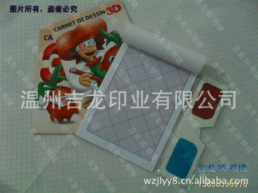 3D眼镜绘画套装,一付眼镜加一本3D绘画册:1.2元/套