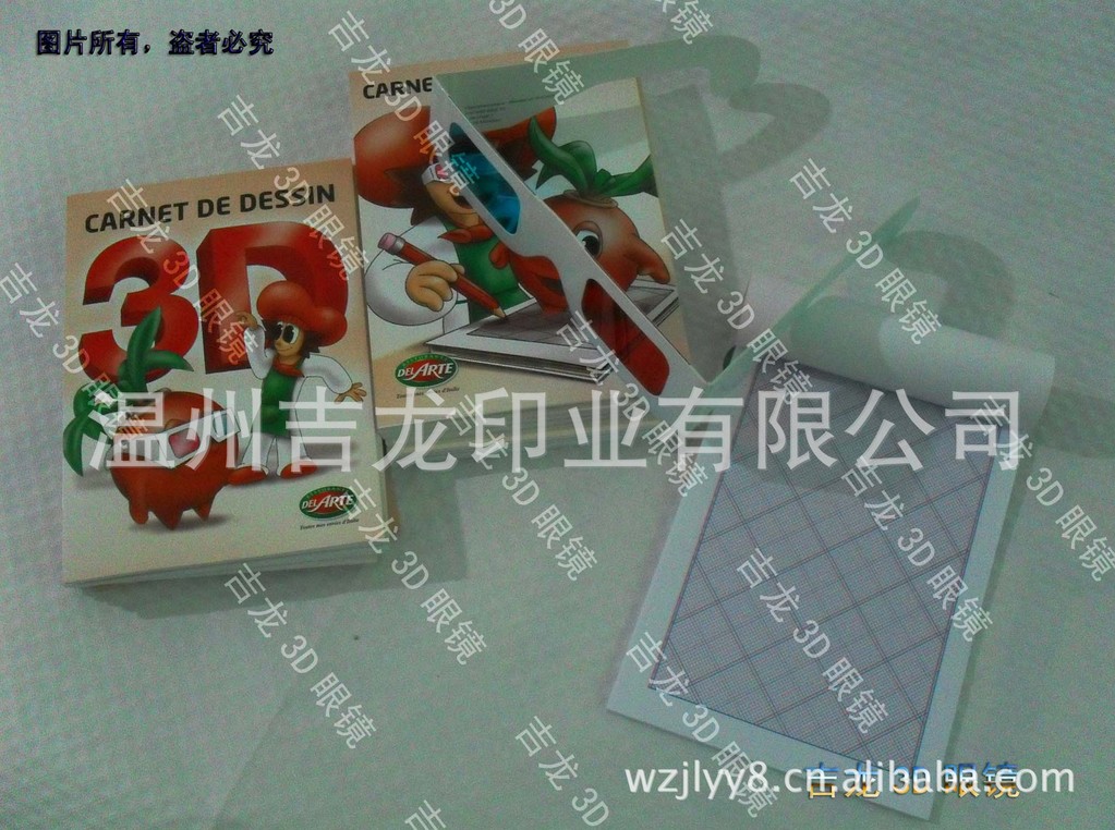 本公司专业生产各类3D眼镜、立体眼镜、偏光眼镜、及各类纸制眼镜、卡通眼镜,解码眼镜、普通太阳眼镜、3D眼镜套装 3D绘画本 3D绘画套装等,为各种立体电视、立体电影、立体图片、电脑立体游戏、立体卡通动画片、儿童玩耍娱乐场合、教育等 采用高档白卡纸制镜架,超薄平面PET镜片,环保、美观、实用,并可根据贵公司提供的题材、图片、尺寸及所要求的材质,进行制作,专版,专用各系列3D立体眼镜,可在眼镜架上随意的做各种广告图案或客商LOGO