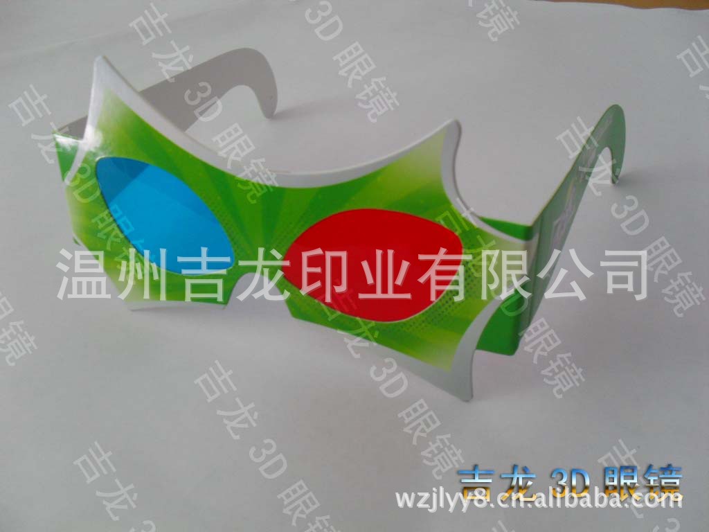 采用高档白卡纸制镜架,超薄平面PET镜片,环保、美观、实用,并可根据贵公司提供的题材、图片、尺寸及所要求的材质,进行制作,专版,专用各系列3D立体眼镜,可在眼镜架上随意的做各种广告图案或客商LOGO