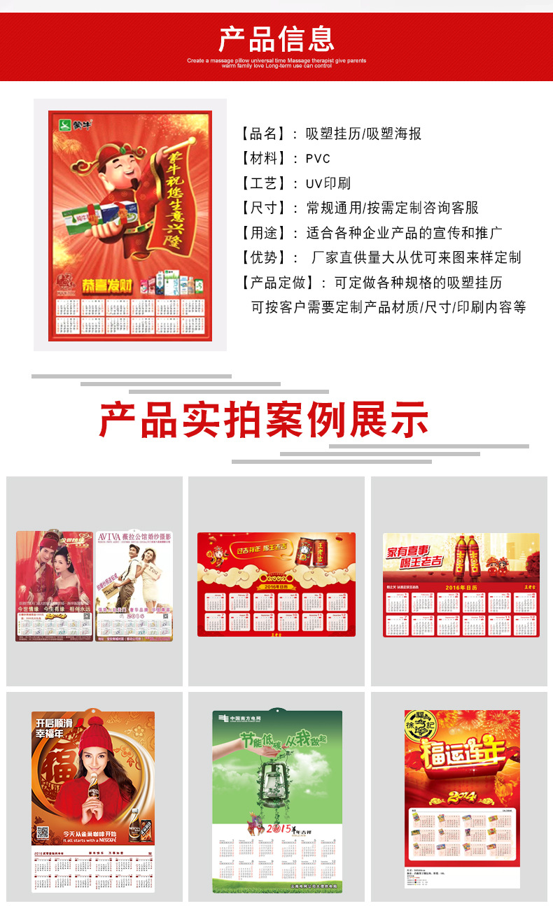 供应专版PVC吸塑浮雕凹凸3D立体海报广告促销宣传活动单张挂历画
