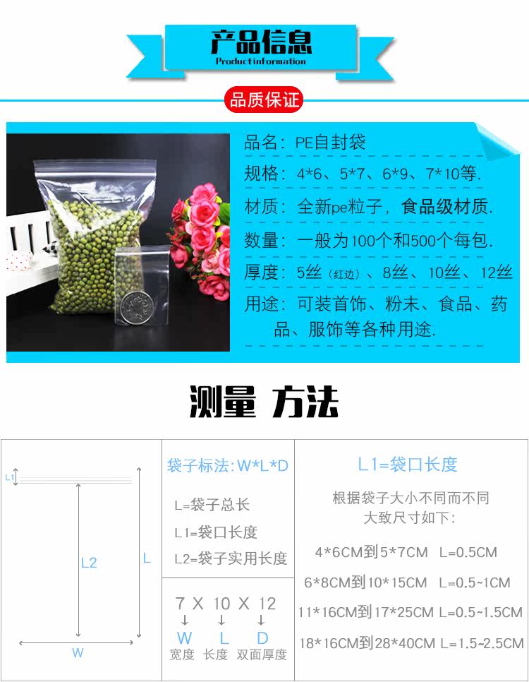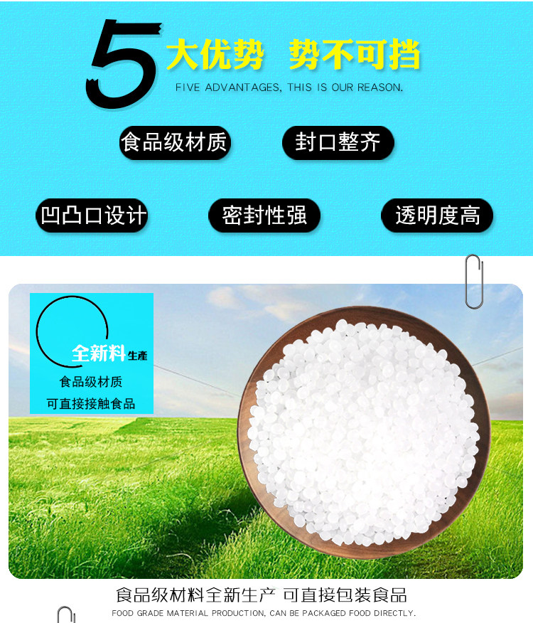 PE自封包装袋一次性密封封口塑封带小号食品级透明塑料加厚1000个