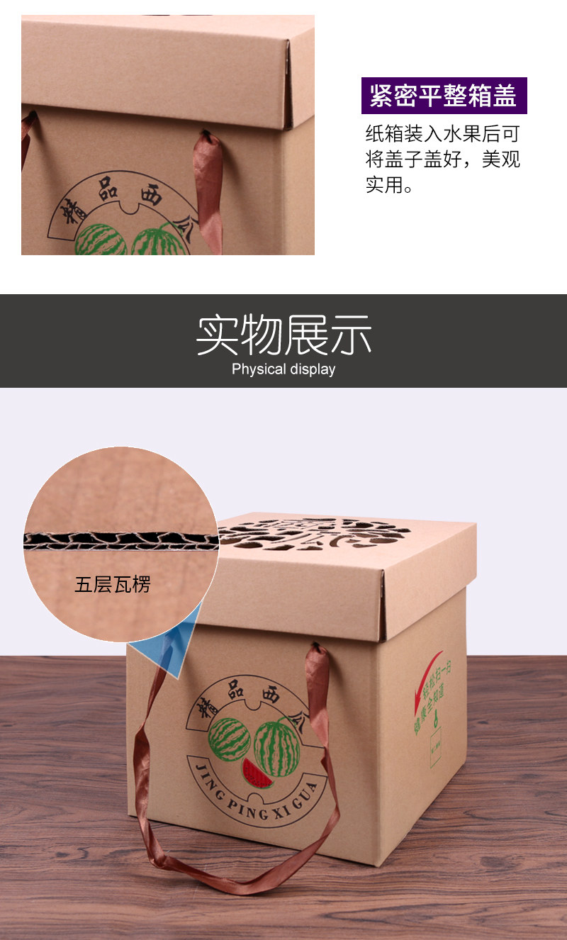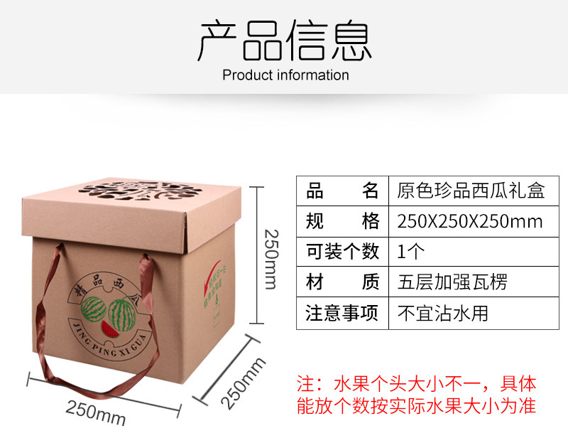 一只装西瓜包装箱8424麒麟瓜礼盒瓦楞黄纸箱天地盖款水果礼盒