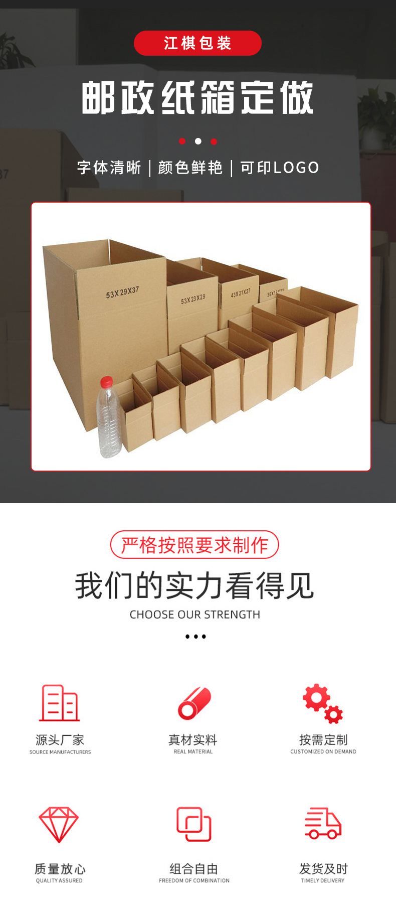 3.关于定做:实力工厂支持各种纸箱定制、印刷,单款纸箱满1000元起订;