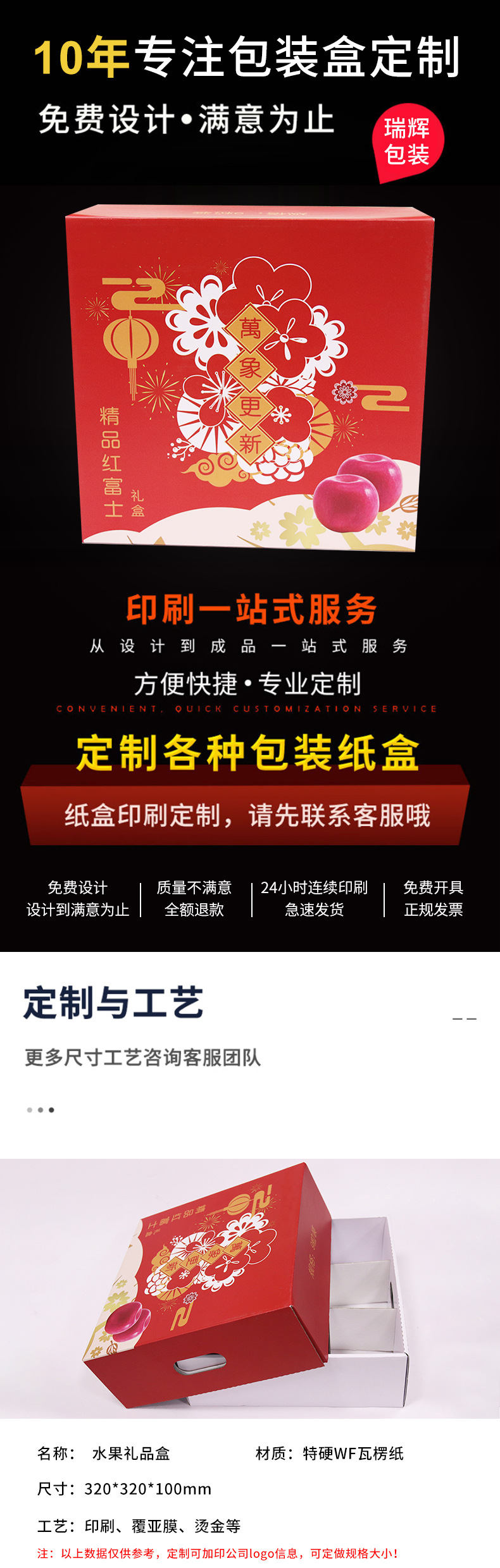 通用水果包装盒高档天地盖纸箱九宫格苹果礼品盒鲜果包装彩盒定制