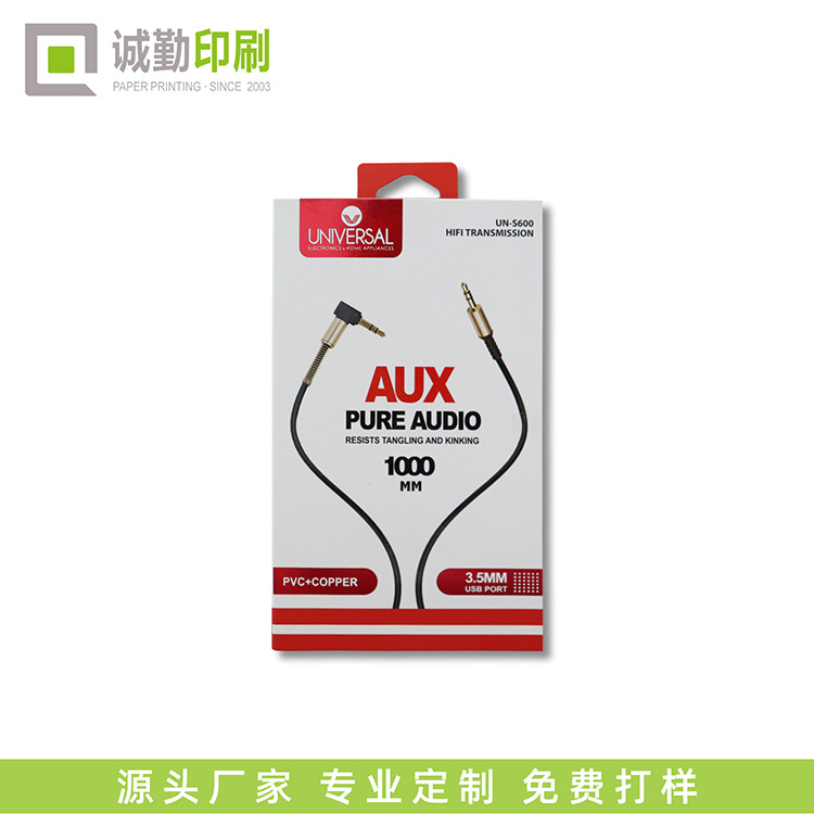 厂家定制彩盒 数据线包装盒 EVA内衬音频线挂钩盒定做