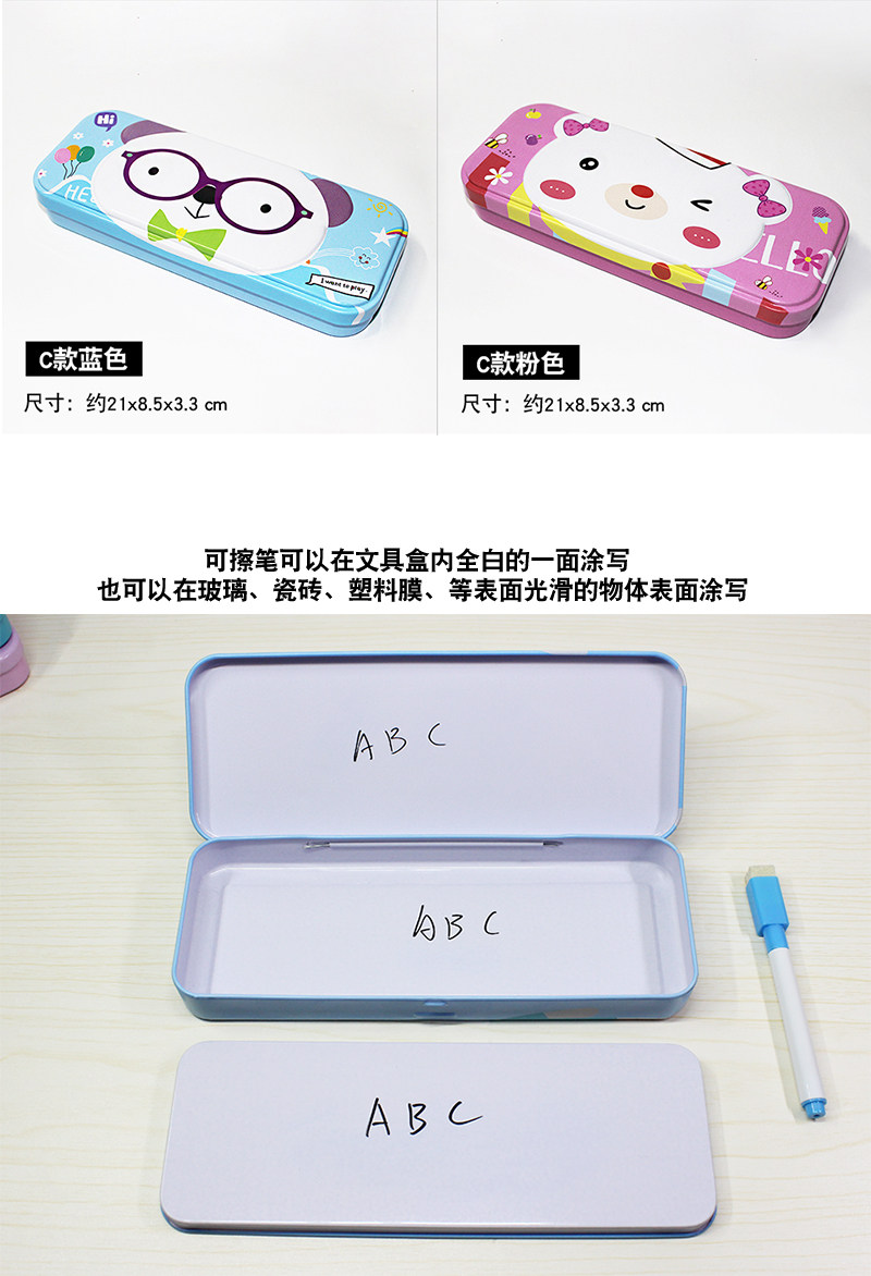 厂家双层铁文具盒大容量铅笔盒男女韩版可爱简约笔盒儿童学生收纳