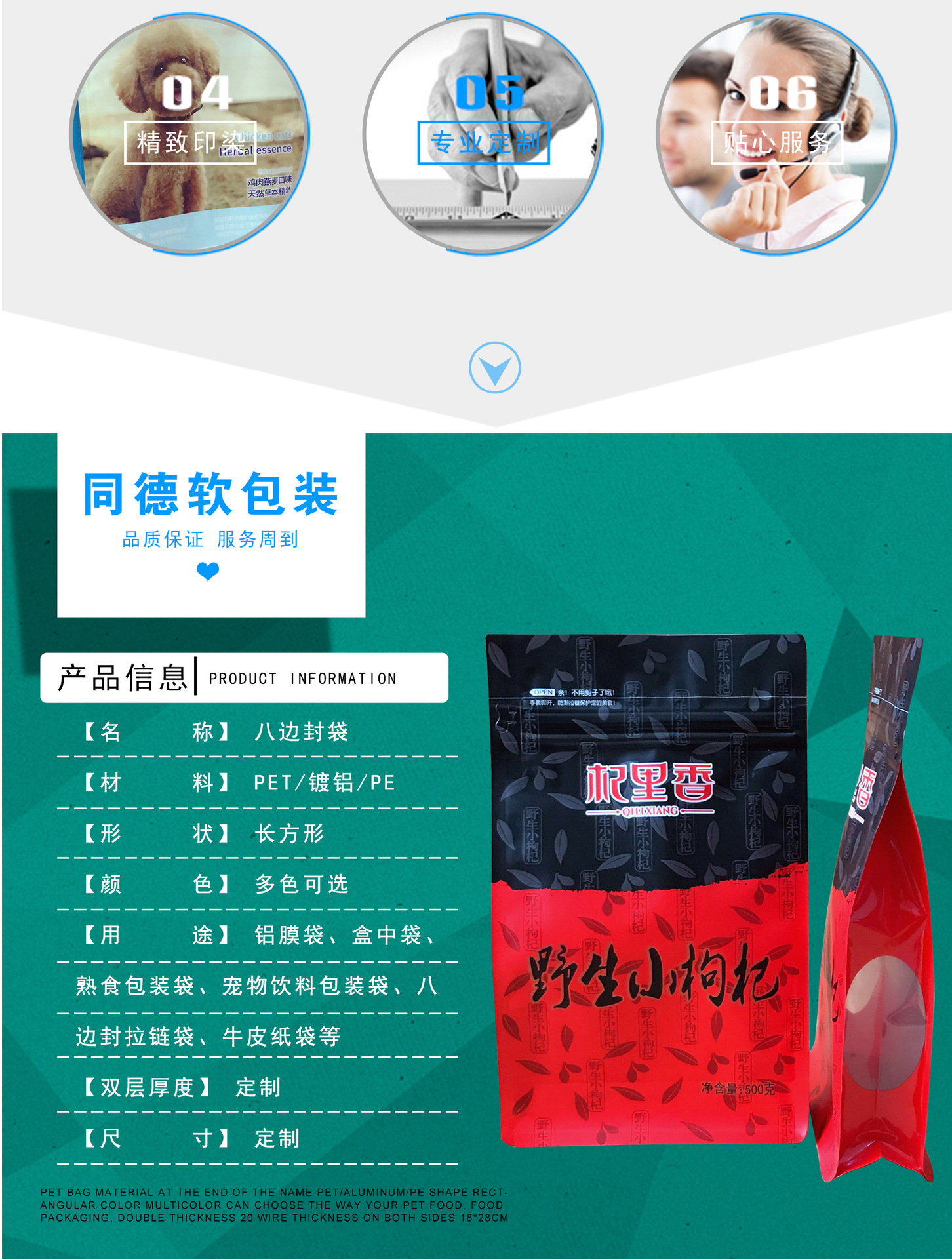 专业定制自封自立狗粮袋 带骨条拉链四边封袋防潮狗粮包装袋