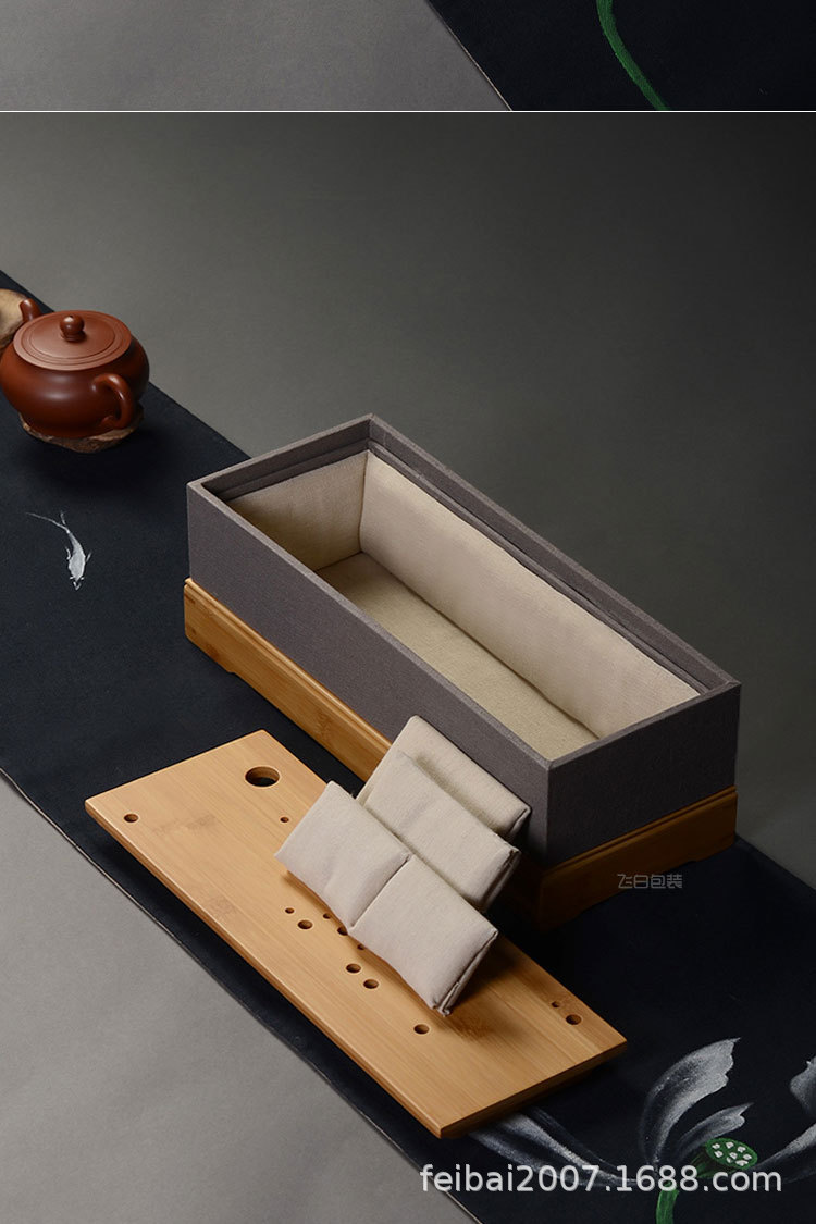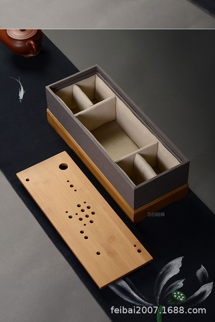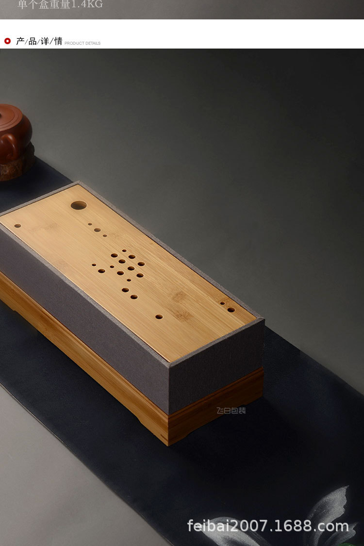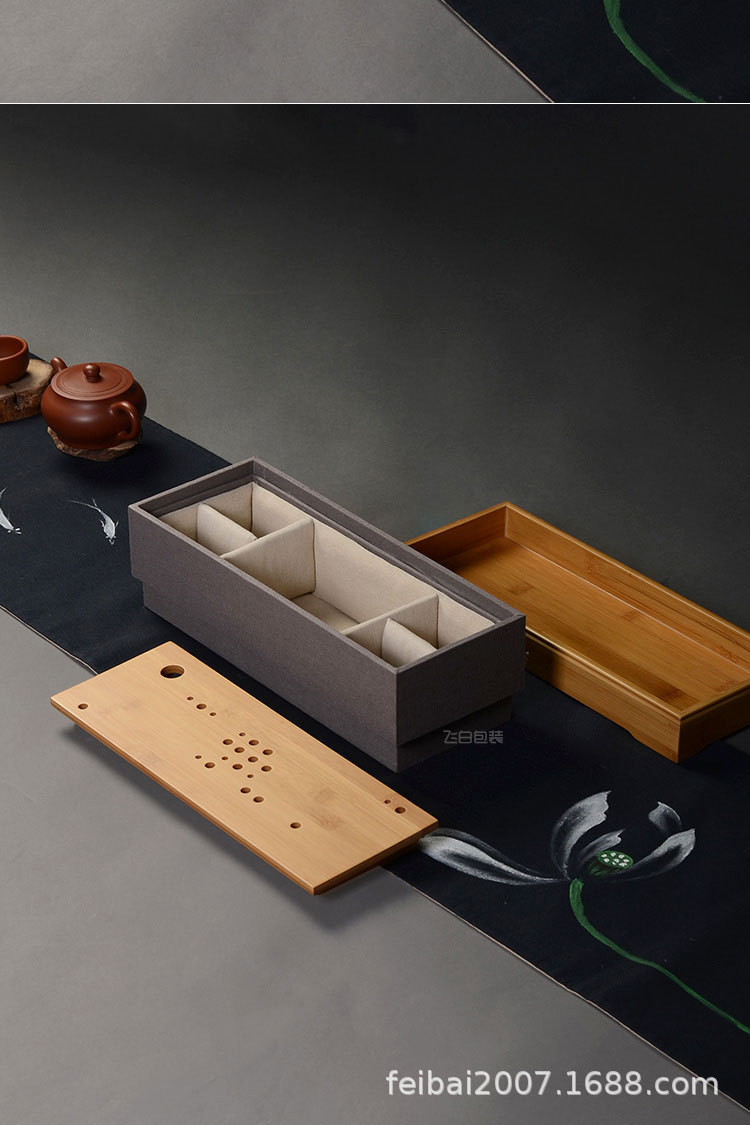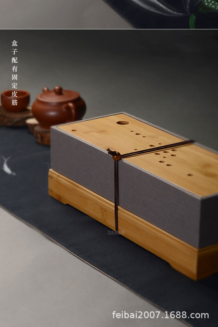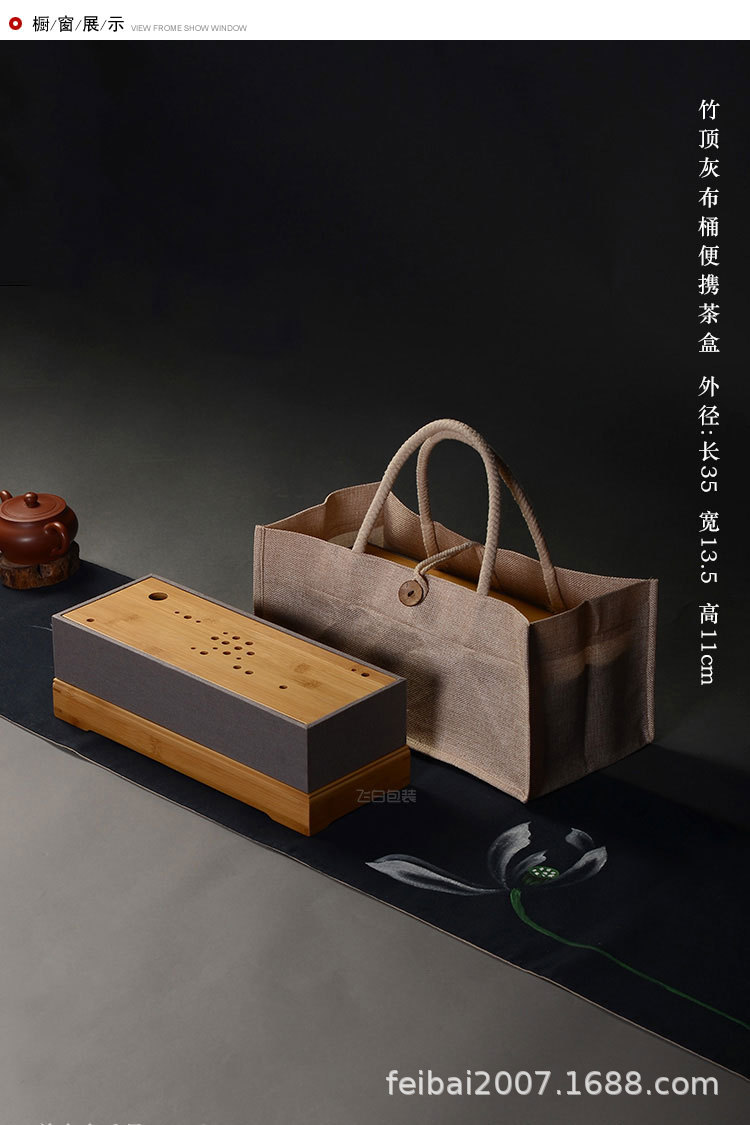 竹顶灰布桶35*14便携茶盒随行旅行便携茶具储水式套装盒