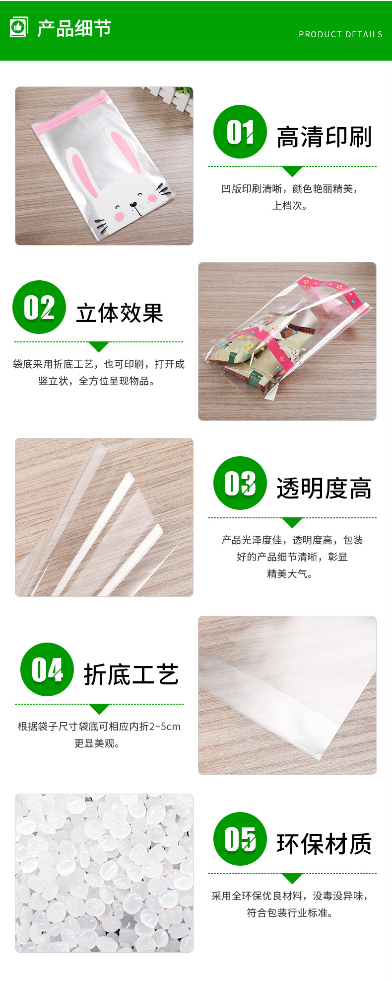 厂家批发彩色印刷折边袋 opp塑料透明包装折底食品糖果烘焙袋定制