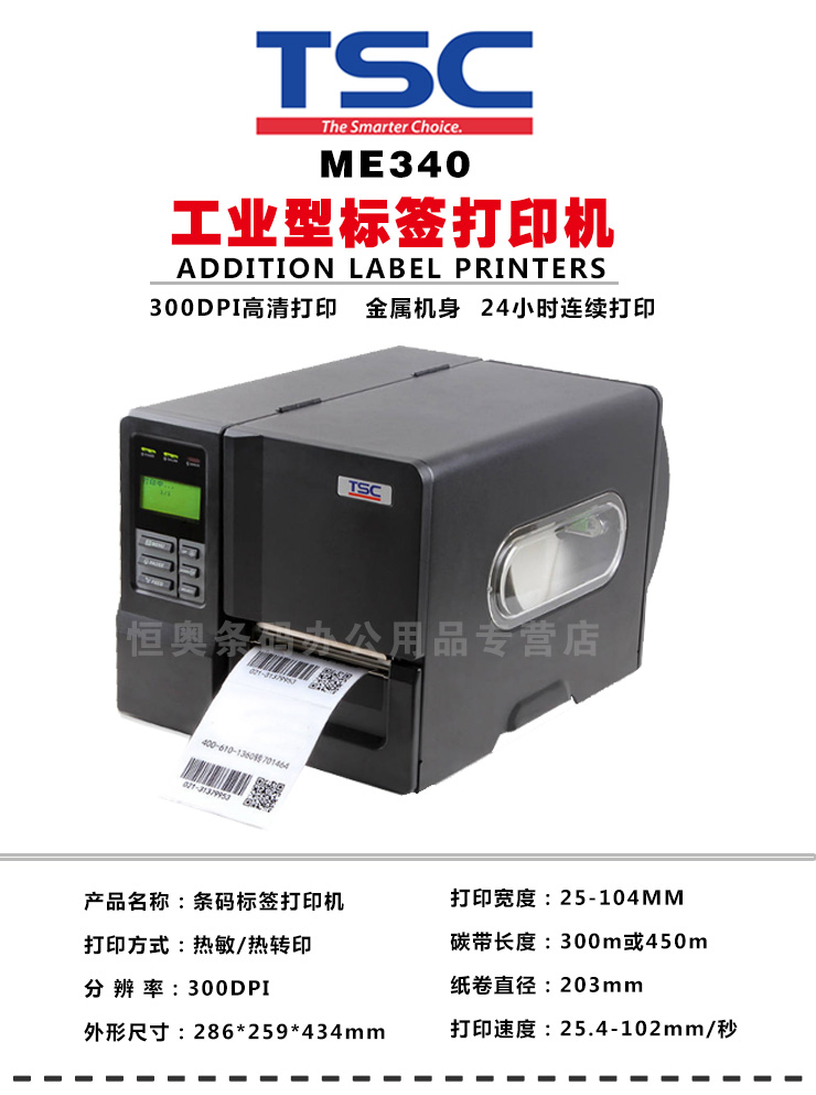 TSC-ME340条码打印机不干胶标签打印机吊牌打印机二维码打印机