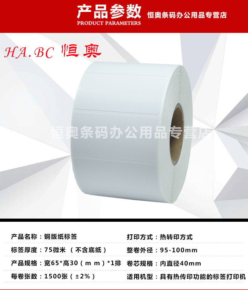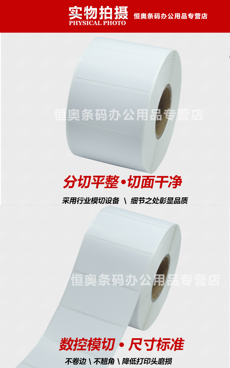 艾利铜版标签纸65*30 35 40 45 50 75 80 85 90空白不干胶条码纸