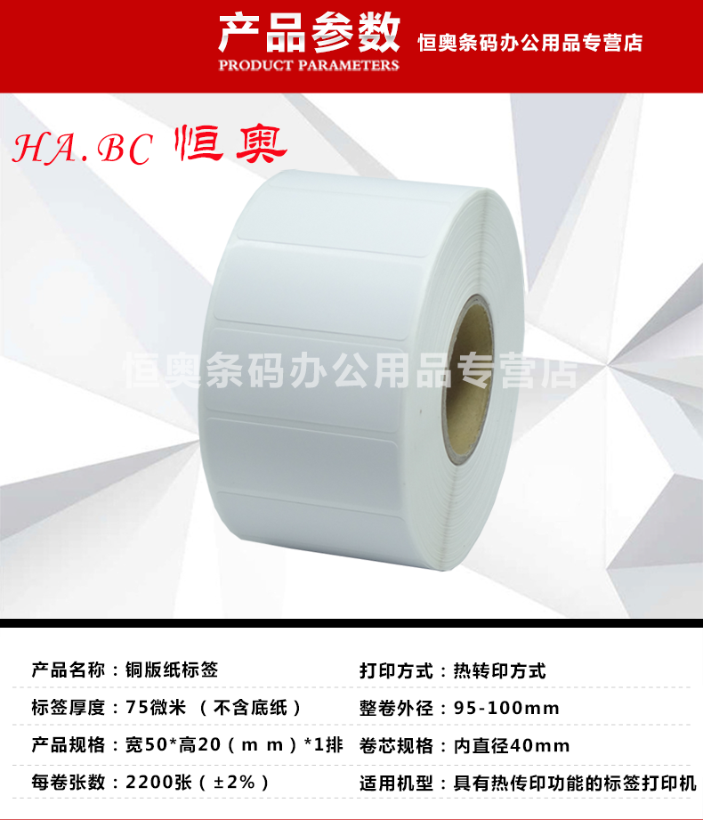 艾利铜版标签纸50*10 15 20 25 30 40 50 70 80 90 不干胶条码纸