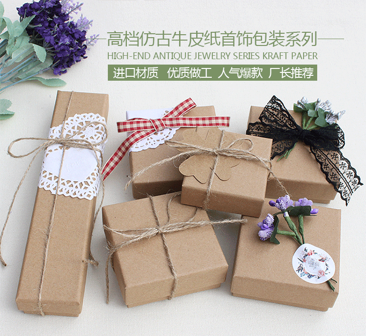 现货 复古牛皮纸首饰礼品创意包装盒 天地盖饰品盒定做 可印logo