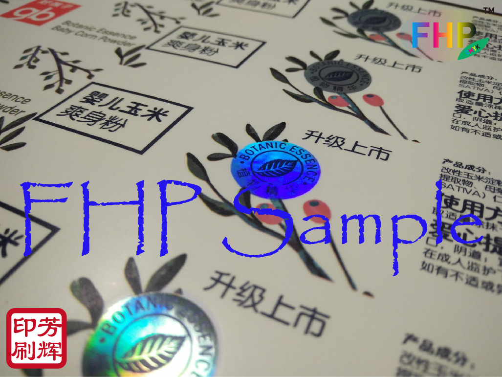 特点: 1 环保75番PP合成纸/水胶/62克白格底 2采用镭射冷烫工艺,漂亮美观,准确套位,高雅闪亮,提高产品附加价值。 3 卷筒自动贴标