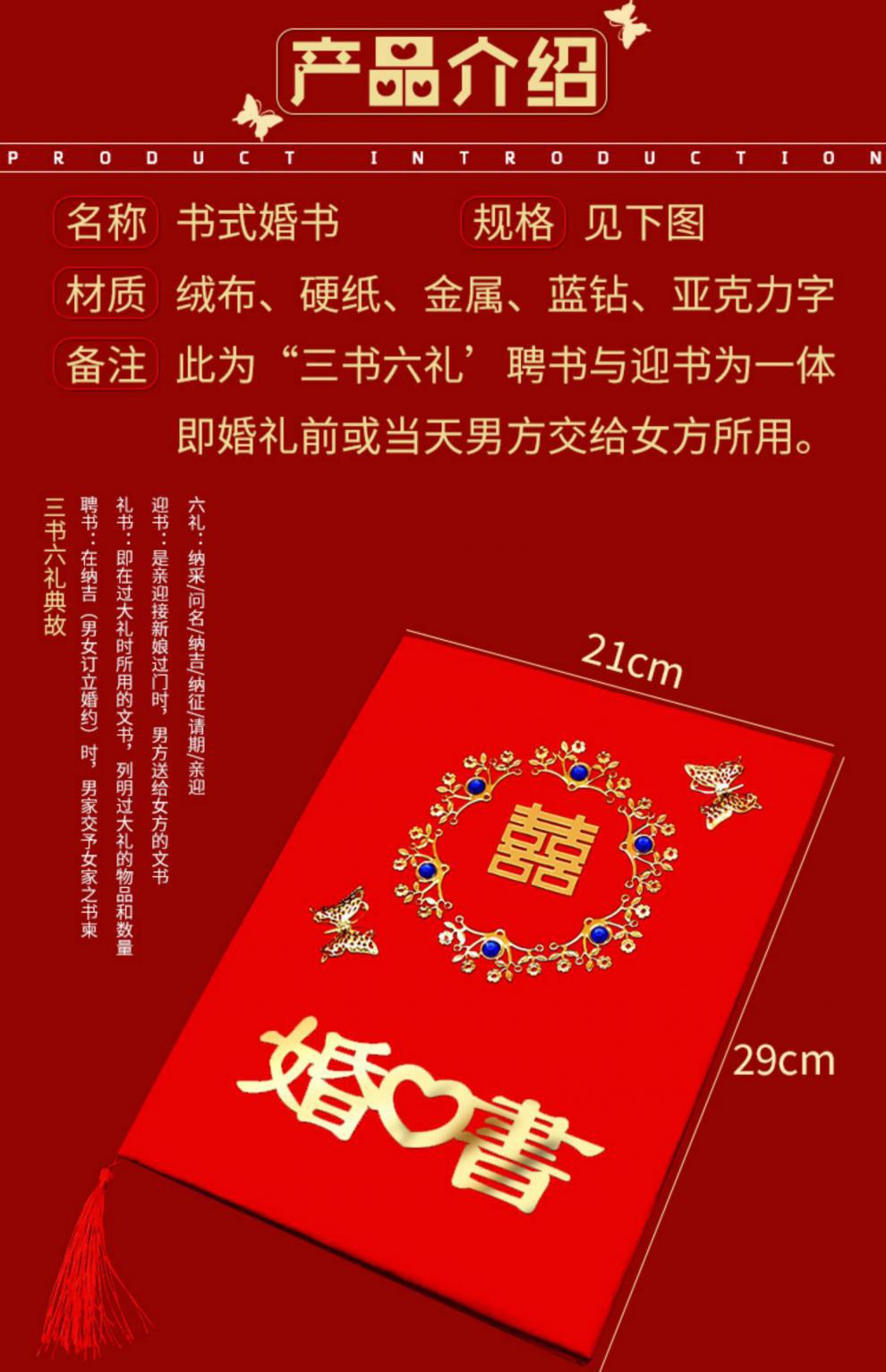 婚书结婚下聘书礼薄中国风手写下聘书婚礼用大全中式纪念送日子书