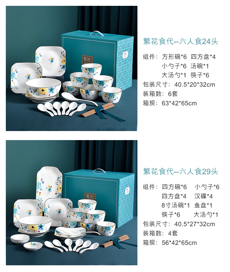 碗碟套装家用陶瓷碗美式礼品送闺蜜结婚餐具婚礼盒套装回礼