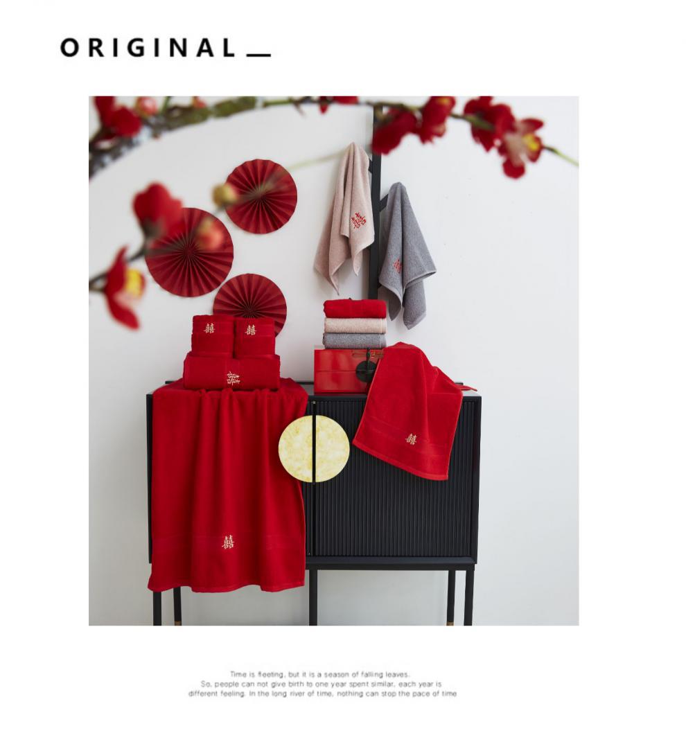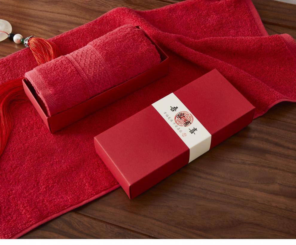 全棉红色喜字回礼毛巾礼盒装 1条装 结婚满月祝寿喜事回礼伴手礼