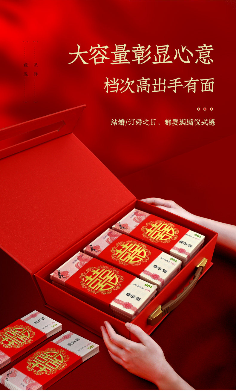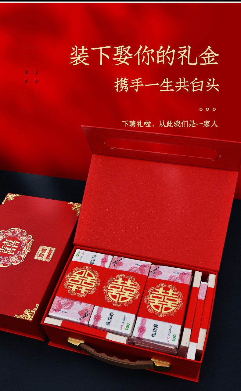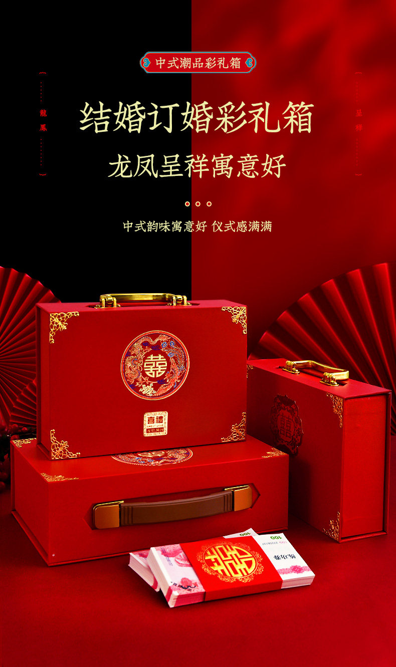 结婚庆彩礼箱订婚礼金箱定亲订婚红色钱箱婚礼女方陪嫁箱礼盒箱子