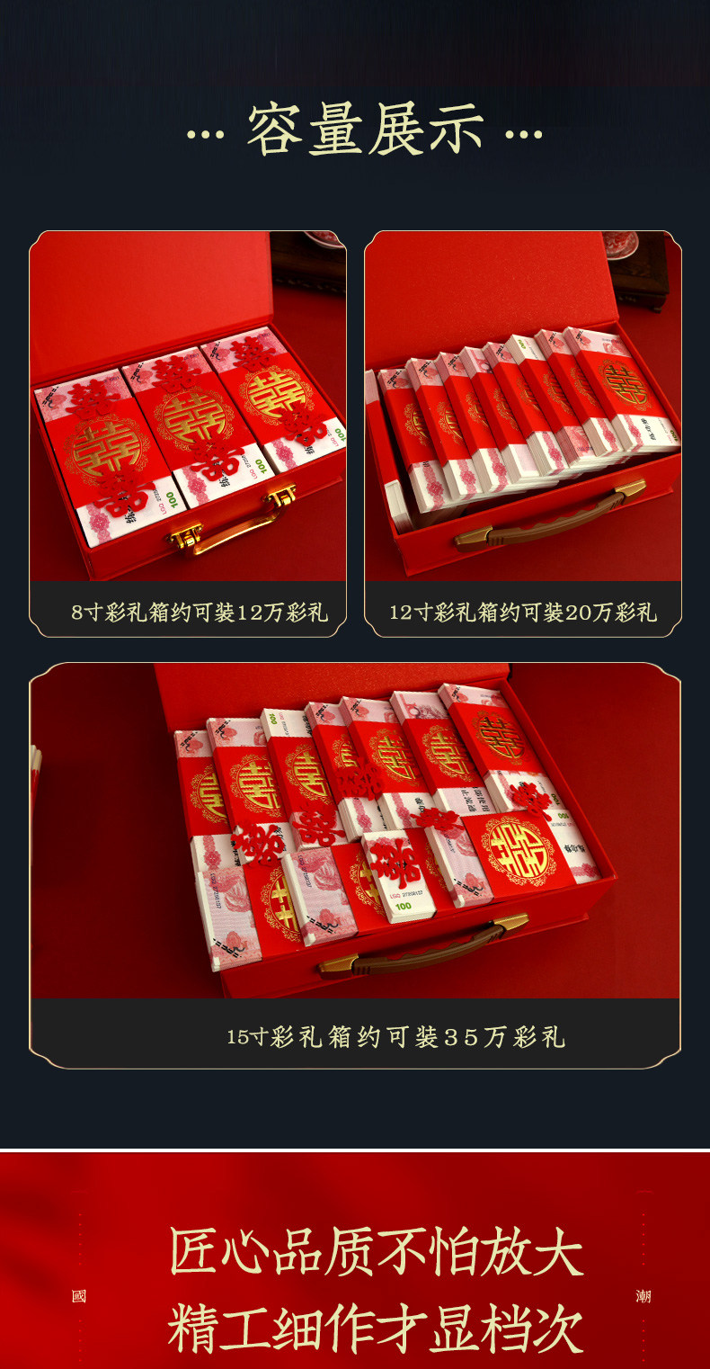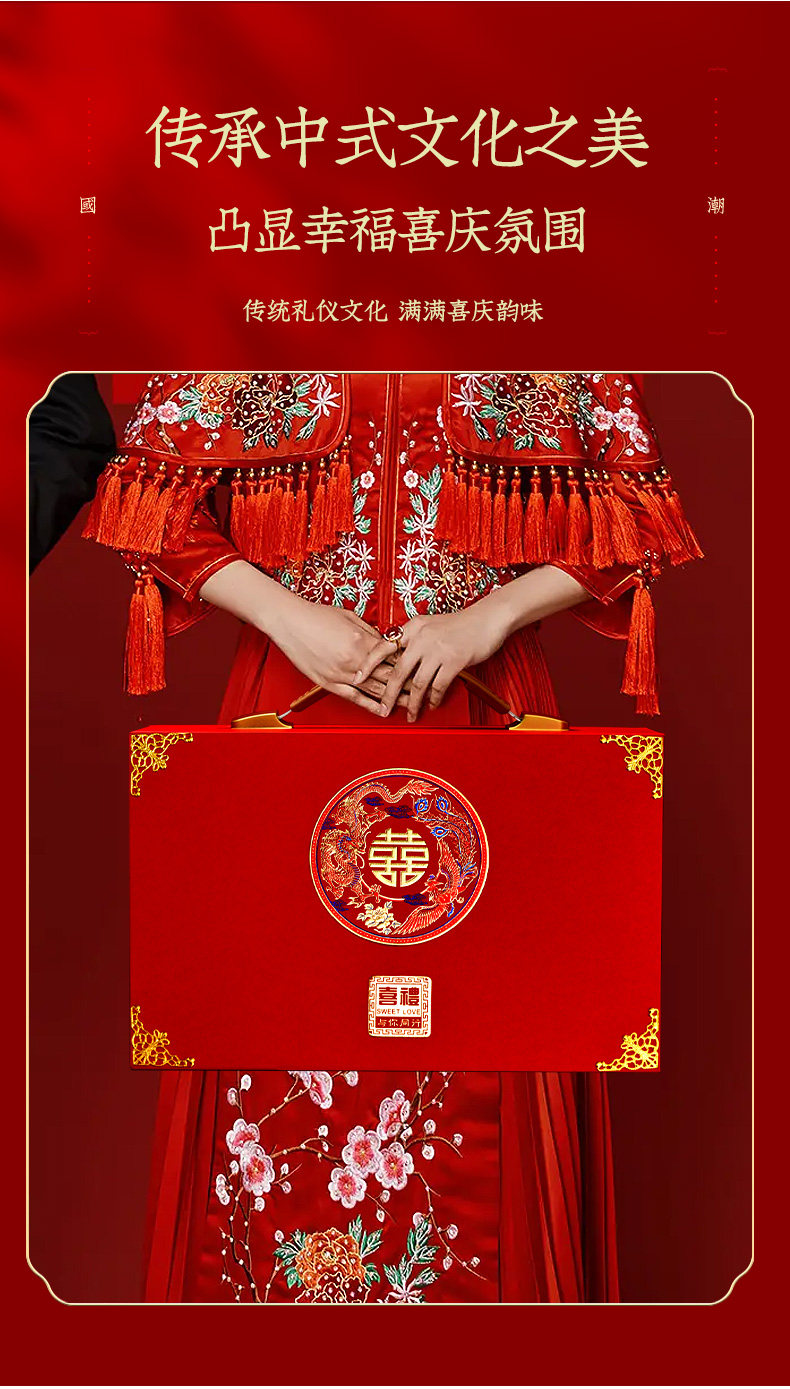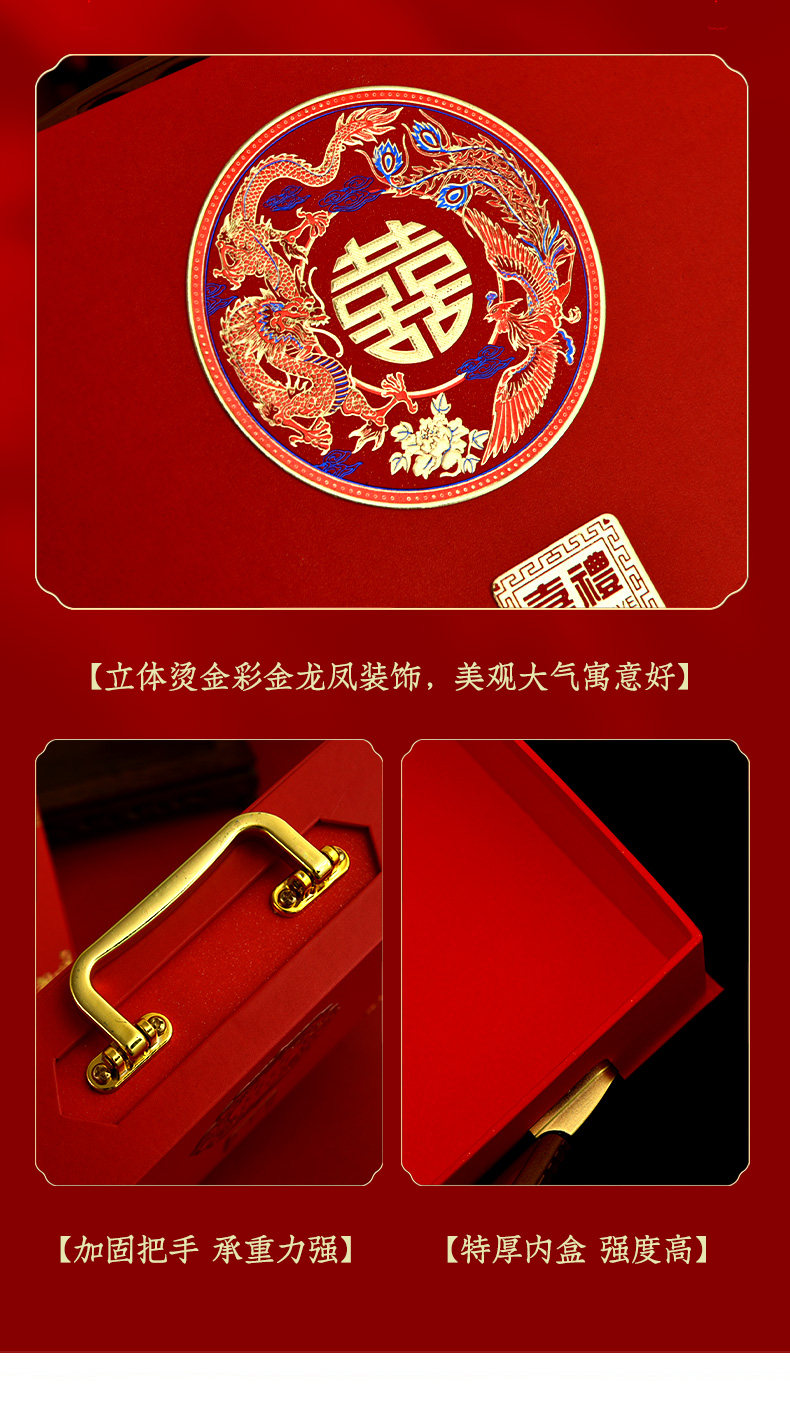 结婚庆彩礼箱订婚礼金箱定亲订婚红色钱箱婚礼女方陪嫁箱礼盒箱子