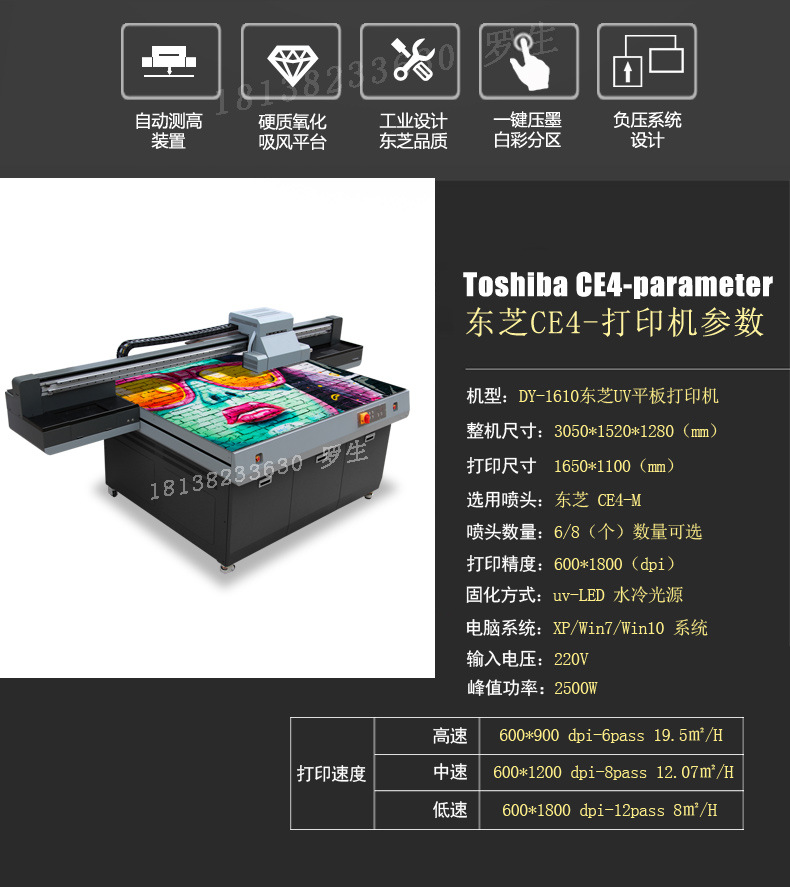 中科创客直销东芝1610uv平板打印机手机壳浮雕金属标配玻璃彩印机